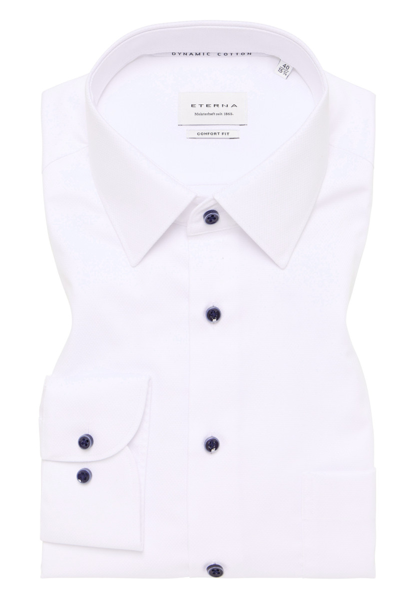 Dynamic Cotton ™ - mit natürlichem Stretch-Effekt ohne Synthetik. Dieses Dynamic Cotton ™ Langarmhemd kombiniert 100% Baumwolle mit einer innovativen Webtechnologie, die einen optimalen Stretch-Effekt nur durch natürliche Fasern garantiert. Diese einzigartige Kombination vereint bügelfreien, knitterfreien Tragekomfort und Nachhaltigkeit zu einem neuen Standard für höchste Ansprüche. Für alle modisch orientierten Männer bieten wir dieses strukturierte Dynamic Cotton ™ Langarmhemd im Dobbydesign, mit Basic Kent-Kragen, an. Dobby-Bindungen entstehen durch eine komplexe Webart und verleihen dem Stoff eine besondere Textur. Gefertigt aus 100% natürlicher, bügelfreier Baumwolle in bequemer Schnittführung. Alle die es gerne schick aber nicht zu einengend mögen, werden diesen Schnitt schätzen. Der Saum ist in normaler Länge gerundet und kann auch ganz lässig über der Hose getragen werden. Gleich heute noch, dieses nachhaltige und funktionsüberlegene Hemd, online bestellen!