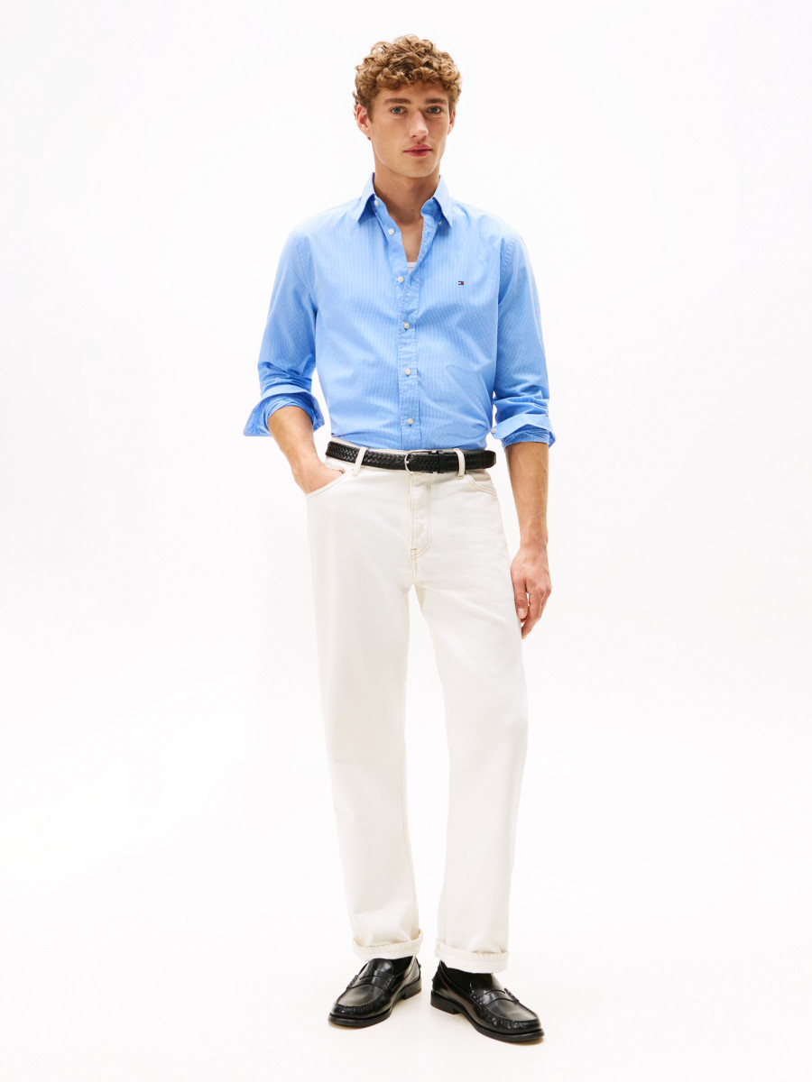 Das klassische Hemd besticht durch seinen zeitlosen Button-Down-Kragen und die feine Struktur des Stoffes in hellblauer Farbe. Die lang geschnittenen Ärmel mit Knopfmanschetten und die durchgehende Knopfleiste sorgen für eine perfekte Passform und vielseitige Tragemöglichkeiten – ob casual oder business. Das dezente Tommy Hilfiger Logo auf der Brust rundet das Design stilvoll ab.