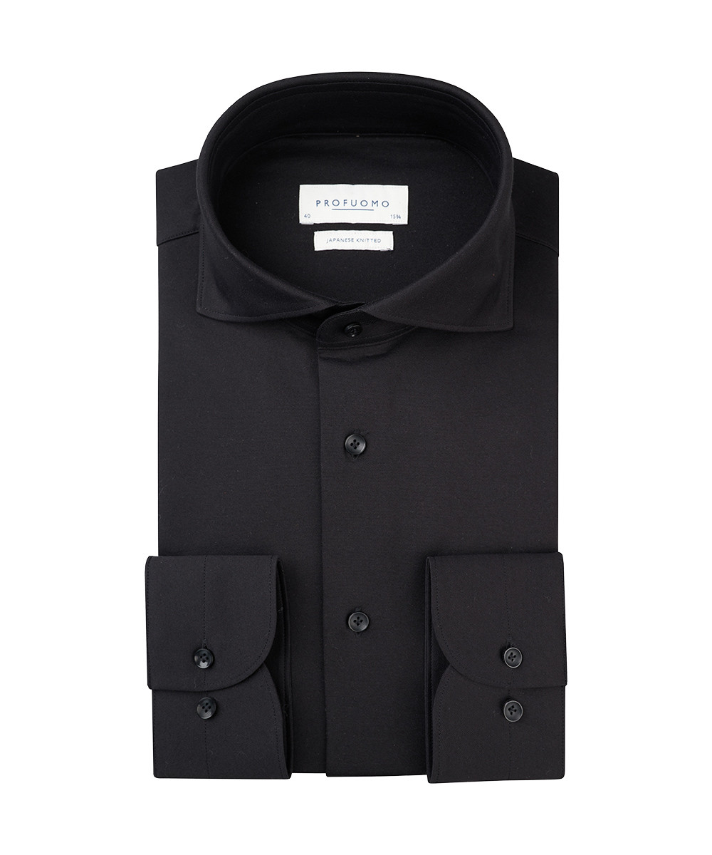 Leichtes, feinstricktes Hemd in Schwarz mit Slim Fit und markantem Cutaway-Kragen. Verbindet eleganten Hemden-Look mit T-Shirt-Komfort – bügelfrei und vielseitig für formelle wie legere Looks.