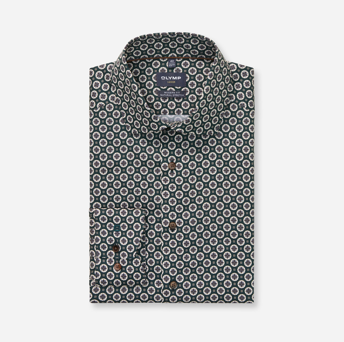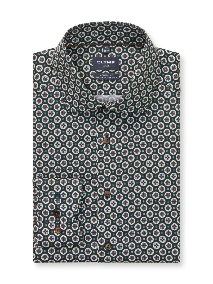 Ein edles Men´s-Club OLYMP Luxor in Dunkelgrün. Die feine Textur aus 100 Prozent Baumwolle begeistert mit elegantem Schimmer, maskulinem Stil und körpernaher Linie. Die speziellen Eigenschaften der feinen Garne sorgen für hautsympathischen Tragekomfort und pflegeleichtes Handling. Vollendet mit kosmopolitischem Global Kent. Bügelfrei.