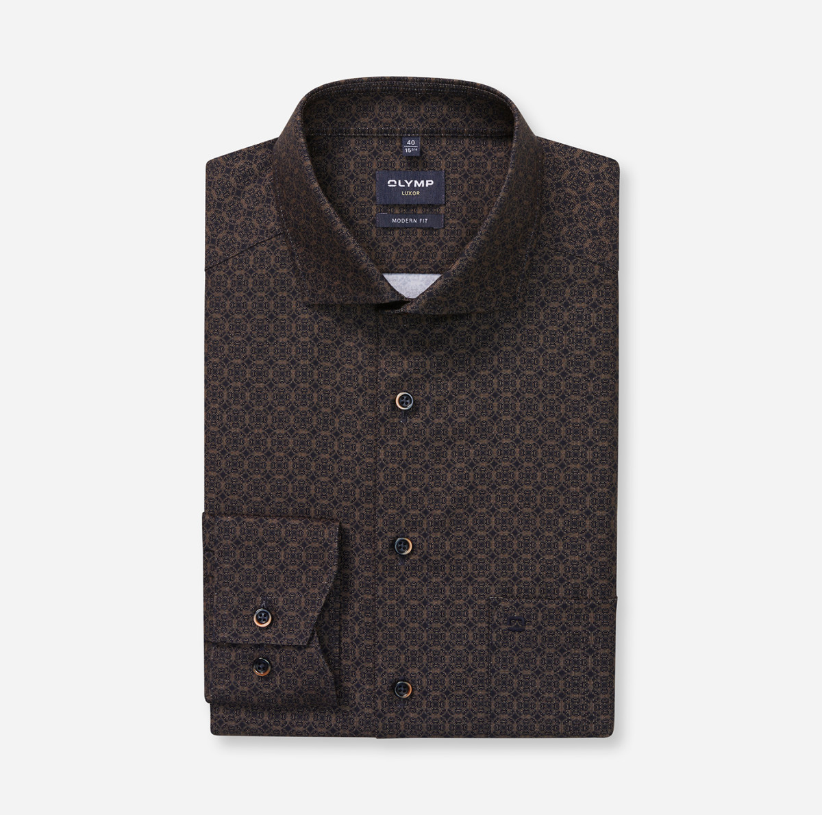 Edel schimmerndes Jacquard-Gewebe aus 100 Prozent Baumwolle – das körpernahe OLYMP Luxor Businesshemd begeistert mit attraktiven Struktureffekten und angenehmen Trageeigenschaften. Die feinen Garne sind hautsympathisch, atmungsaktiv, natürlich dehnbar und bügelfrei. Elegant vollendet mit markantem Royal Kent.