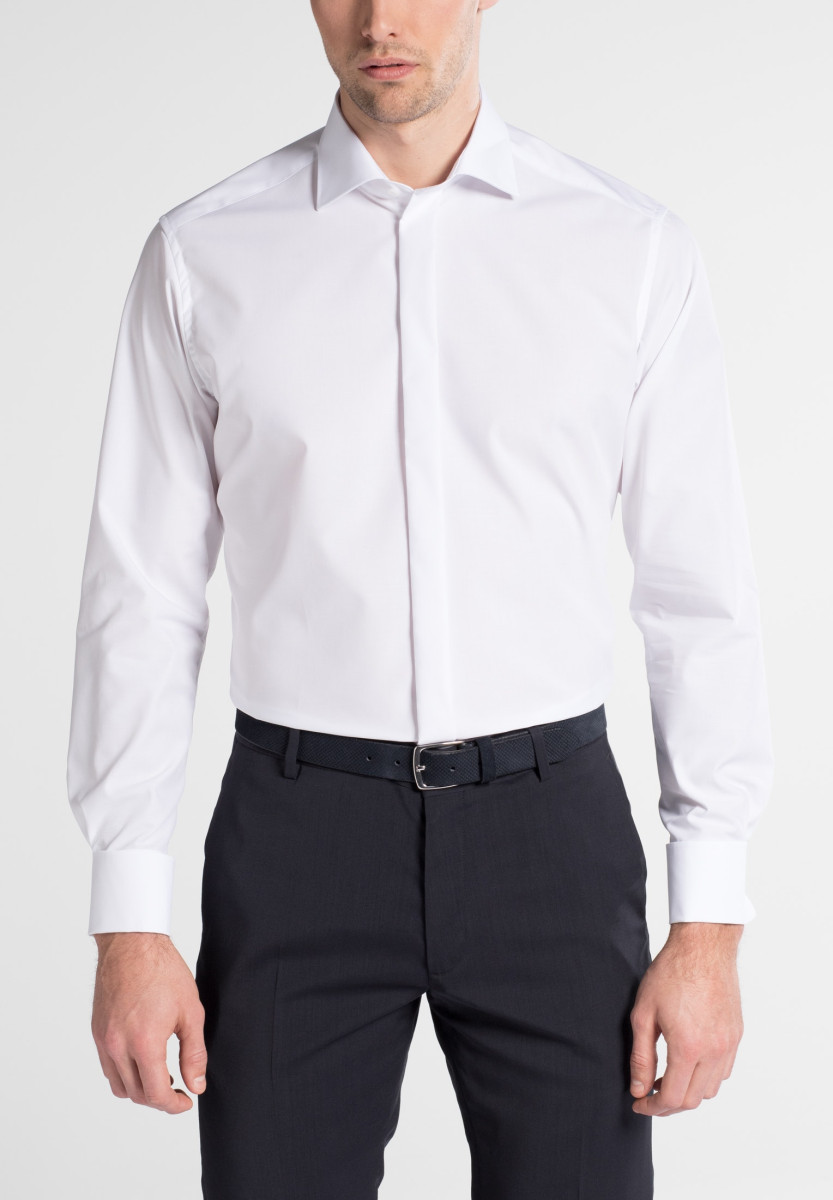 Es gibt immer einen Grund zu feiern! Egal ob Hochzeit, Taufe oder andere festlichen Anlässe - dieses feine Galahemd, in leicht taillierter Schnittführung ist für die ganz besonderen Momente in Ihrem Leben. Feiern Sie stilsicher! Durch die Umschlagmanschette, die verdeckte Knopfleiste und den Classic Kent-Kragen bringt es Glamour in Ihr Outfit. (Ohne Brusttasche). Die feine Baumwoll-Qualität (bügelfrei) sorgt an diesem besonderen Tag für ein höchst angenehmes Tragegefühl, das Sie mit Sicherheit zu schätzen wissen werden. Kombiniert mit edlen, silberfarbigen Manschettenknöpfen aus unserem aktuellen Programm ist Ihr Gesamterscheinungsbild perfekt.. Also worauf warten - bestellen Sie noch heute und Ihre nächste Feier kann ungestört kommen!