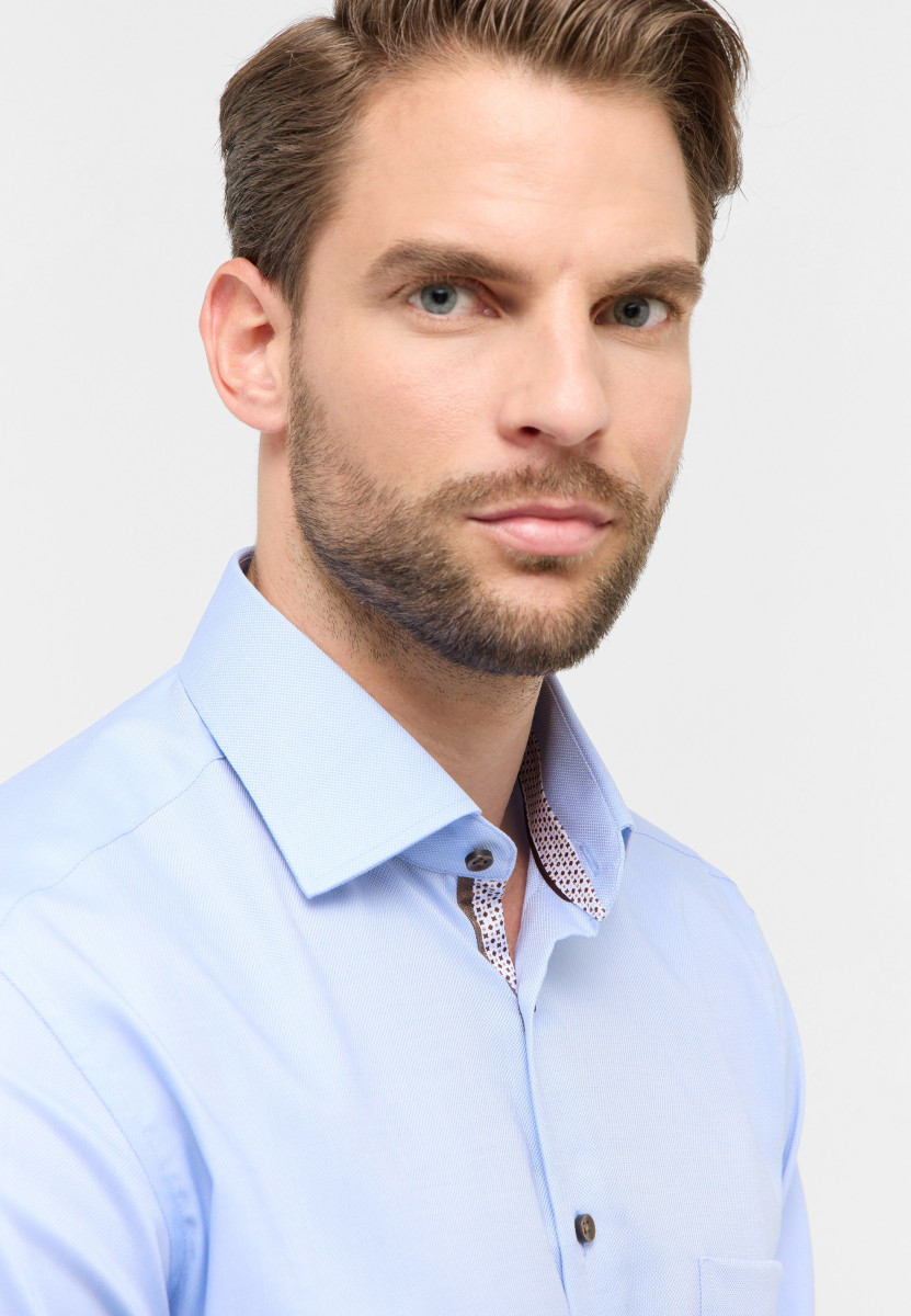 Zeitlos moderner Stil für Männer! Mit diesem strukturierten Natté-Hemd, in bequemer Schnittführung, liegen Sie immer richtig, wenn Sie Wert auf sportliche Eleganz legen. Der Begriff „Natté“ kommt aus dem Französischen und bedeutet übersetzt „geflochten". Die würfelartige Optik wird durch die Bindung erzielt. Das sehr plastische Gewebe ist großporig und daher sehr luftdurchlässig. Die Fertigung aus reiner, bügelfreier Baumwolle verleiht diesem Hemd (mit Brusttasche) nicht nur Pflegeleichtigkeit, sondern auch einen perfekten Tragekomfort. Der angesagte Gala-Kent-Kragen und das eingearbeitete Band im Krageninnensteg runden den Look gelungen ab. Der Saum ist in normaler Länge gerundet , damit dieses Hemd auch ganz leger über der Hose getragen werden kann. Heute noch im ETERNA Online-Shop bestellen!