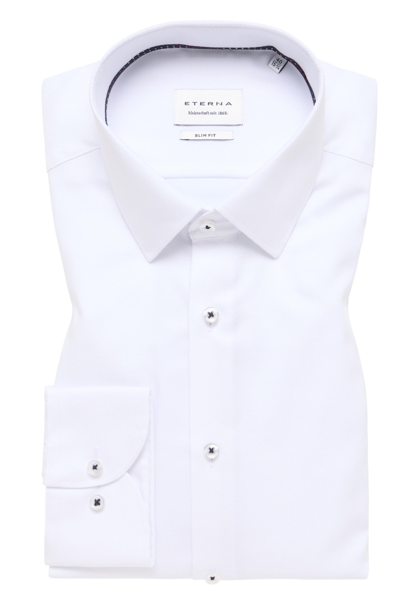 Das Hemd präsentiert sich in einem klassischen Schnitt und besticht durch eine subtile, feine Webstruktur, die dem Material eine exquisite Haptik und eine anspruchsvolle Tiefe verleiht. Der Kent-Kragen und die durchgehende Knopfleiste mit dezent glänzenden Knöpfen unterstreichen den zeitlosen und professionellen Look. Die langen Ärmel sind mit klassischen Manschetten versehen. Gefertigt aus einem hochwertigen, pflegeleichten Material, das oftmals bügelfreie oder knitterarme Eigenschaften besitzt, ist dieses Hemd ideal für vielbeschäftigte Tage. Es ist die perfekte Wahl für Anzüge, Krawatten oder als Basis für einen smarten Auftritt.