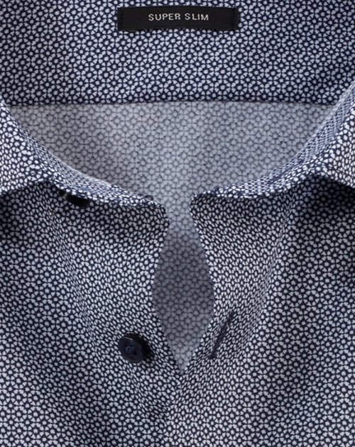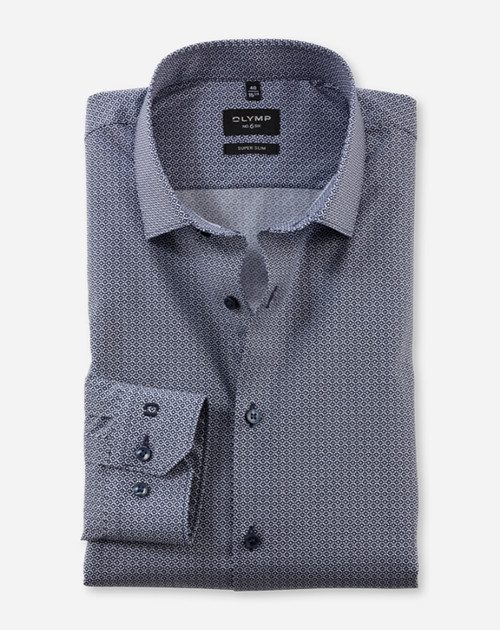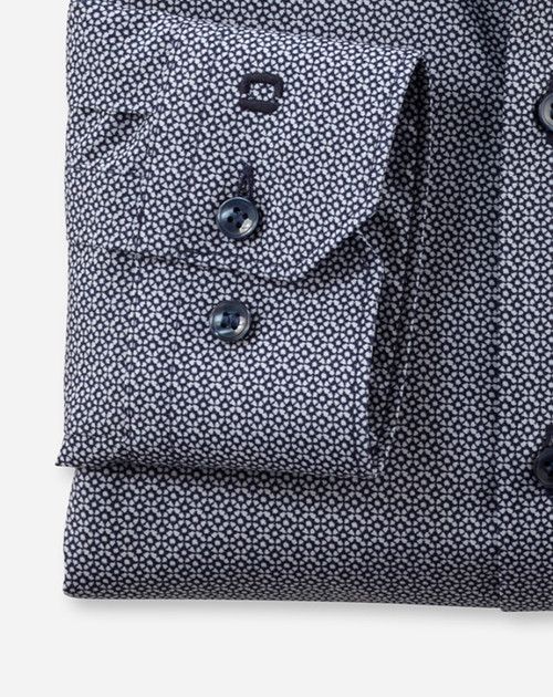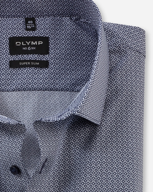 Eine gekonnte Musterunterbrechung im Office gelingt durch dieses OLYMP No. Six mit grafischem Rotationsprint in Marine auf weißem Background. Der smarte Modern Kent unterstreicht die superschlanke Linienführung. Dynamischer Comfort-Stretch für hautsympathischen Tragekomfort und beständige Bestform. Zeitsparend pflege- und bügelleicht.