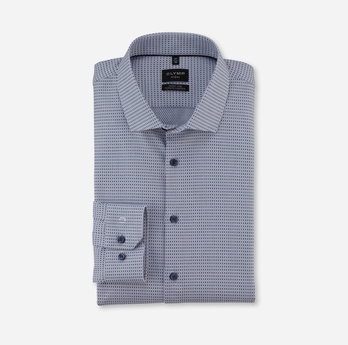 Souverän wie ein Businessklassiker, bequem wie ein Shirt: Als Teil der Linie 24/Seven Dynamic Flex Shirt ist dieses smarte OLYMP No. Six eine ideale Wahl für den agilen Businessalltag. Gefertigt aus hoch elastischen Hightech-Garnen mit temperaturausgleichendem Climate-Control-Effekt, bequem, leicht und bügelleicht. Klassisches Webmuster in Bleu.