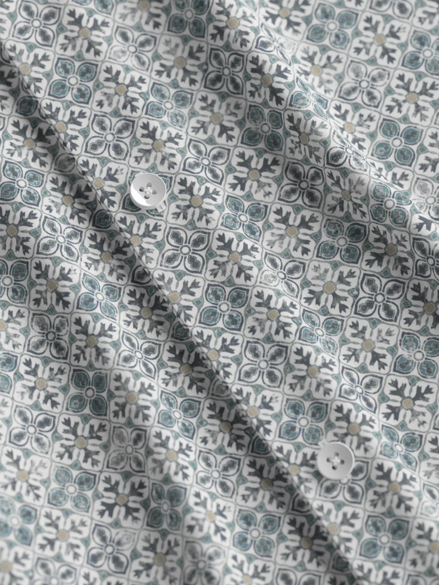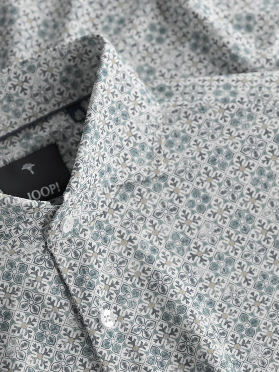 Dieses elegante Herrenhemd überzeugt durch sein zeitgemäßes Design und die feine Musterung, die aus kleinen, geometrischen Elementen besteht und aus der Ferne wie eine strukturierte Oberfläche wirkt. Dieses anspruchsvolle Mikro-Muster verleiht dem Hemd eine moderne Dynamik und ersetzt stilvoll das unifarbene Basic. Gefertigt aus einem hochwertigen, pflegeleichten Material, bietet es in der Regel eine angenehme Haptik und eine hervorragende Passform, oft im Slim Fit oder Modern Fit.