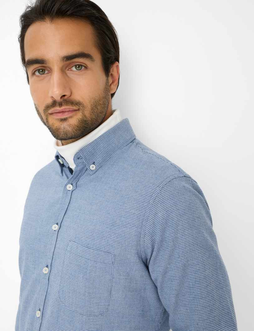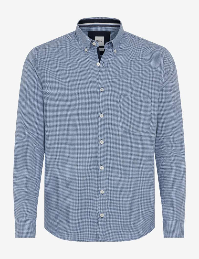 Das Brax Herren Hemd in blauem Karomuster kombiniert zeitlose Eleganz mit modernem Komfort. Der Button-Down-Kragen und die brusttasche verleihen dem Hemd einen klassischen Look, während der weich gewebte Stoff für ein angenehmes Tragegefühl sorgt. Dieses Hemd ist die perfekte Wahl für den Business-Look oder für entspannte Casual-Outfits.
