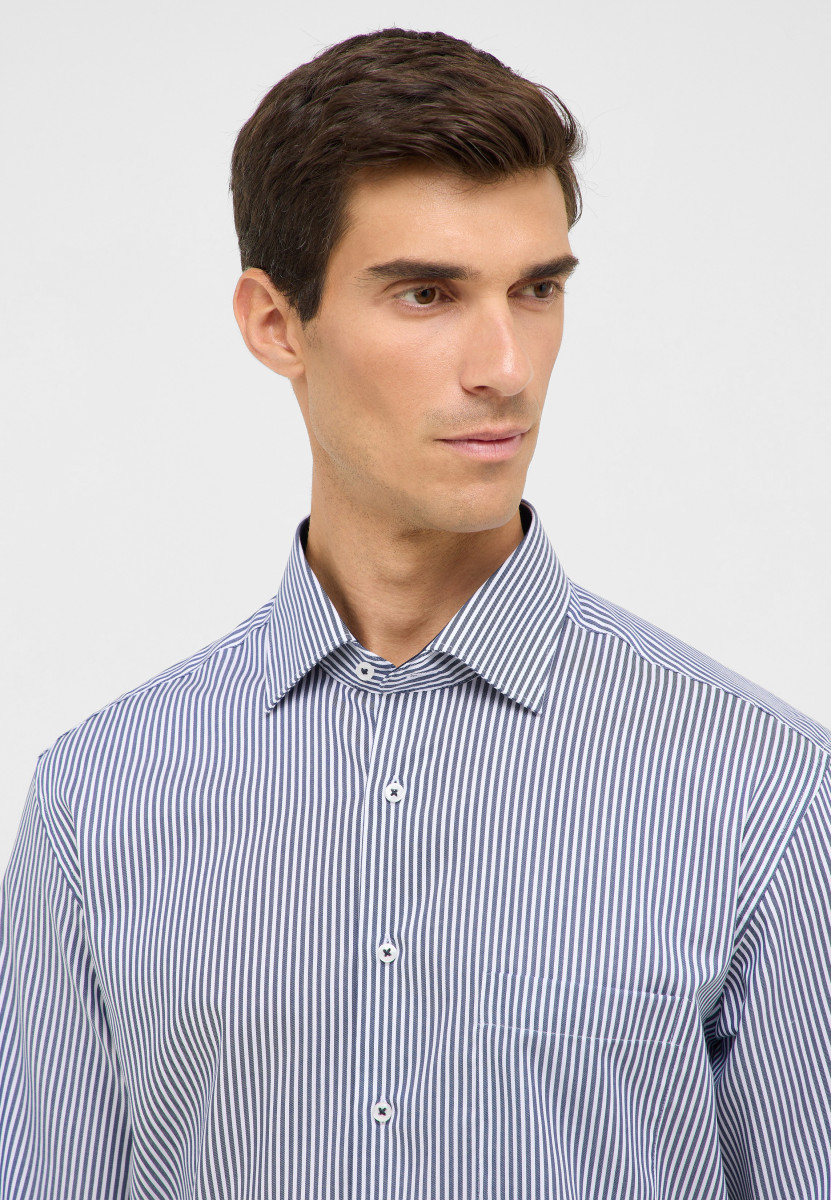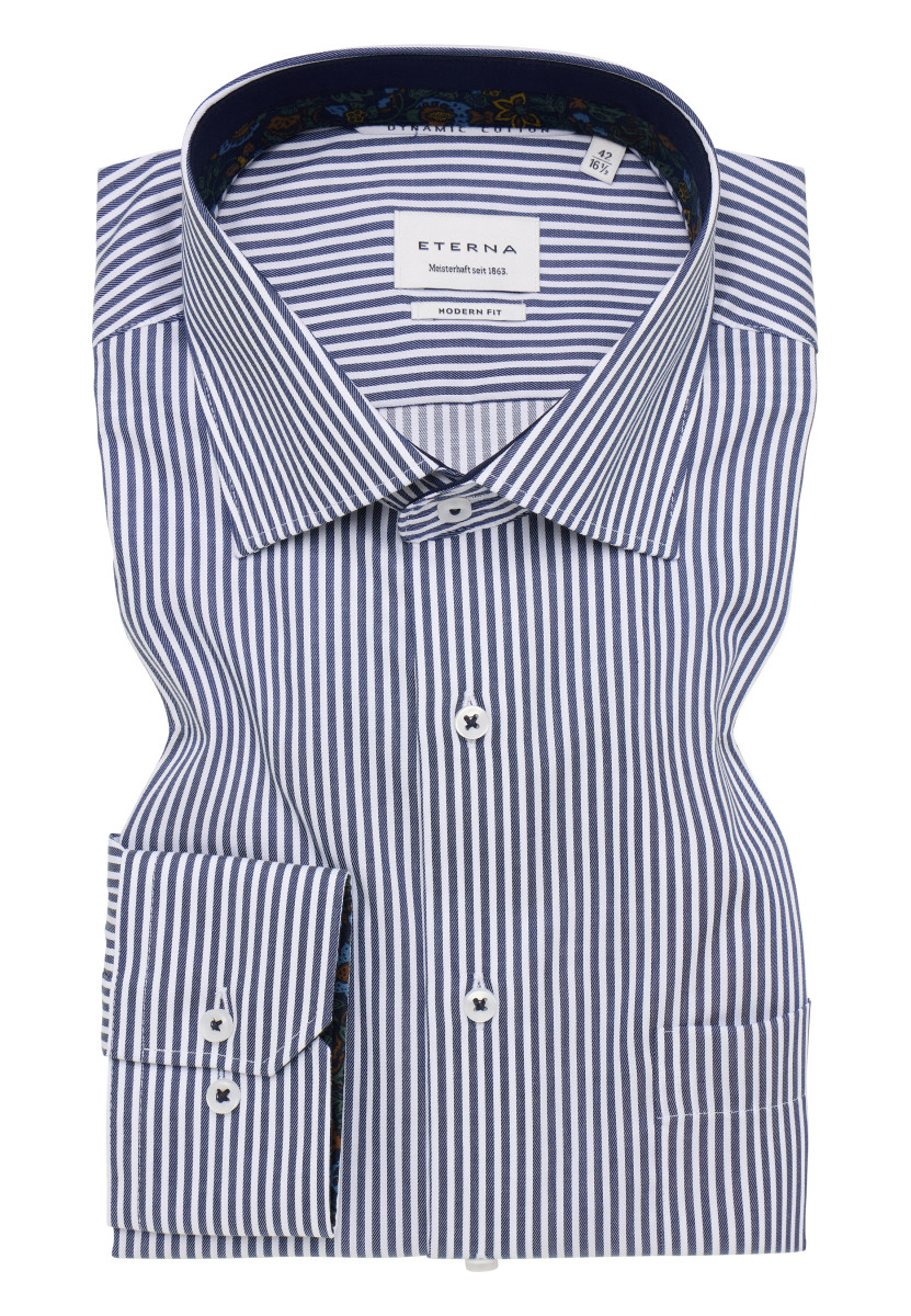 Dynamic Cotton ™ - mit natürlichem Stretch-Effekt ohne Synthetik. Dieses Dynamic Cotton ™ Langarmhemd kombiniert 100% Baumwolle mit einer innovativen Webtechnologie, die einen optimalen Stretcheffekt nur durch natürliche Fasern garantiert. Diese einzigartige Kombination vereint bügelfreien Tragekomfort und Nachhaltigkeit zu einem neuen Standard für höchste Ansprüche. Für alle modisch orientierten Männer bieten wir dieses gestreifte Dynamic Cotton ™ Twill-Langarmhemd, mit Gala Kent-Kragen, modischen Patches und Brusttasche, an. Gefertigt aus natürlicher Baumwolle in taillierter Schnittführung, die alle Männer anspricht, die den klassischen Look etwas modischer interpretieren wollen. Der Saum ist in normaler Länge gerundet und kann auch ganz lässig über der Hose getragen werden. Gleich heute noch, dieses nachhaltige und funktionsüberlegene Hemd, online bestellen!