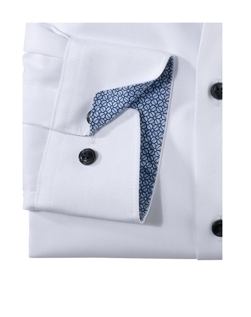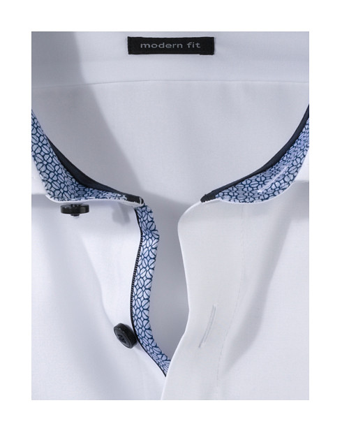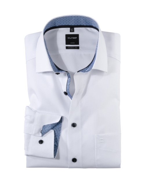 Einfach waschen, trocknen, anziehen – OLYMP Luxor modern fit bleibt auch ohne Bügeln den ganzen Tag glatt. Das knitter- und bügelfreie Businesshemd aus 100% Baumwolle macht immer eine gute Figur. Der Oberstoff in Weiß harmoniert mit dem geschmackvoll darauf abgestimmten Kontrastgewebe am Krageninnensteg und den Innenmanschetten in perfekter Art und Weise. Ein eleganter Global-Kent-Kragen sowie weitenverstellbare Kombimanschetten und die paspelierte Knopfleiste machen den Style komplett. Der atmungsaktive und hautsympathische Stoff hält jeden Stress aus.
