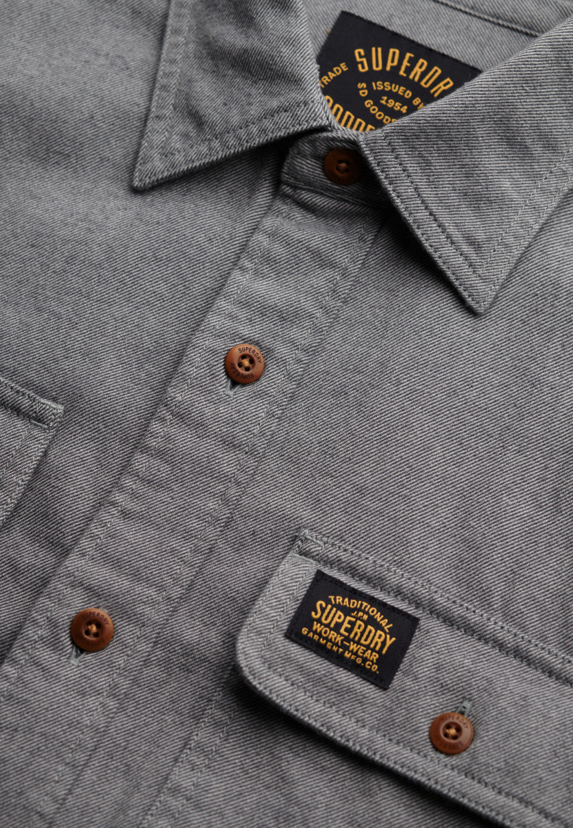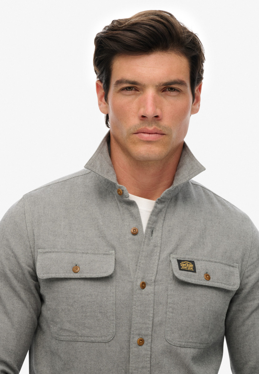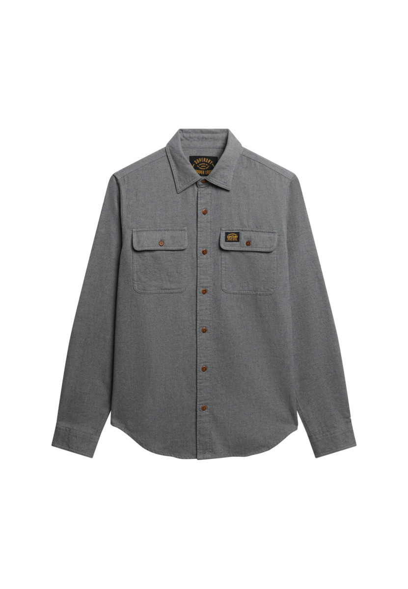 Lockere Passform | Baumwoll-Twill-Flanellstoff | Standardkragen | Knopfverschluss | Lange Ärmel | Knopfmanschetten | Zwei Knopftaschen auf der Brust | Vintage Superdry-Patch | Charakteristischer Superdry-Anhänger