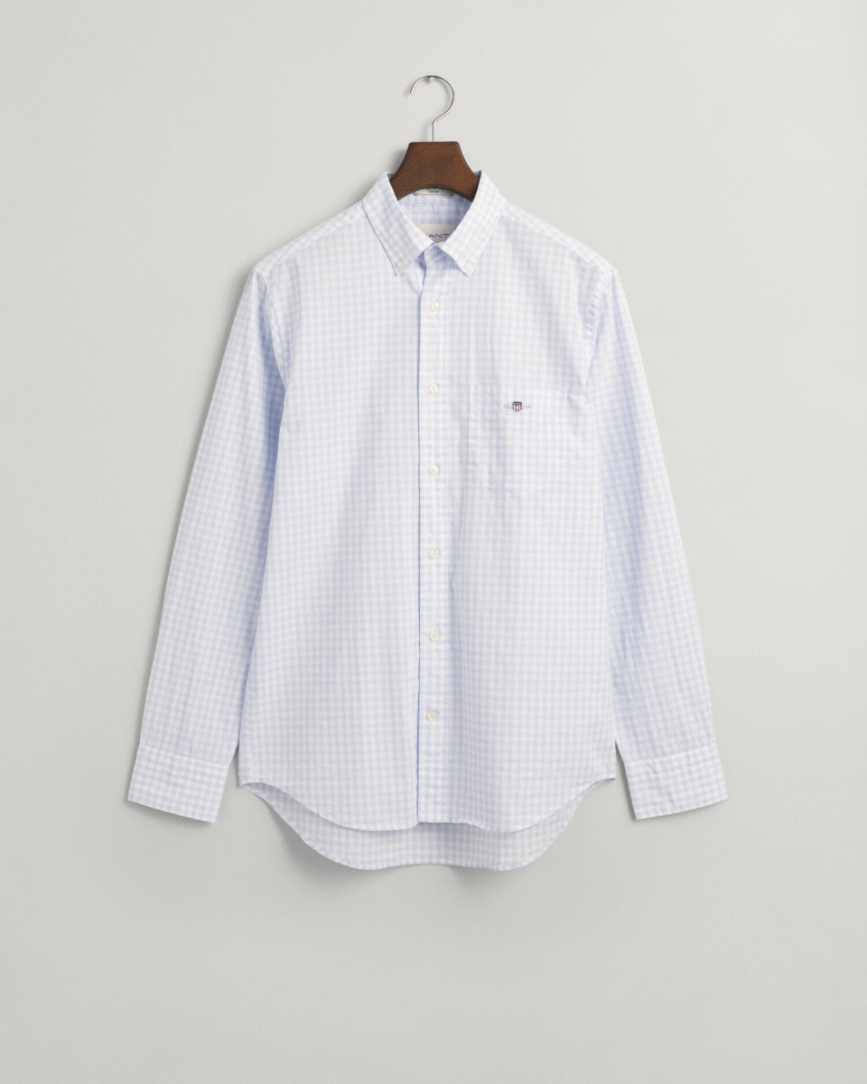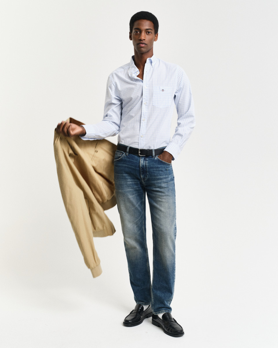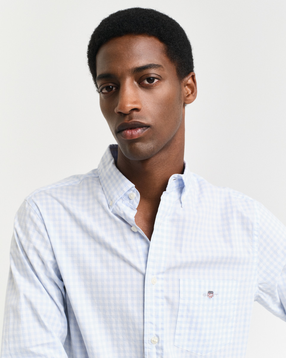 Normale Passform | Button-down-Kragen | Brusttasche | Verstellbare Manschetten | Knöpfe aus recyceltem Polyester | Kellerfalte mit Locker-Loop-Schlaufe am Rücken | Grafische GANT-Stickerei auf der Brusttasche | Mit ähnlichen Farben waschen.