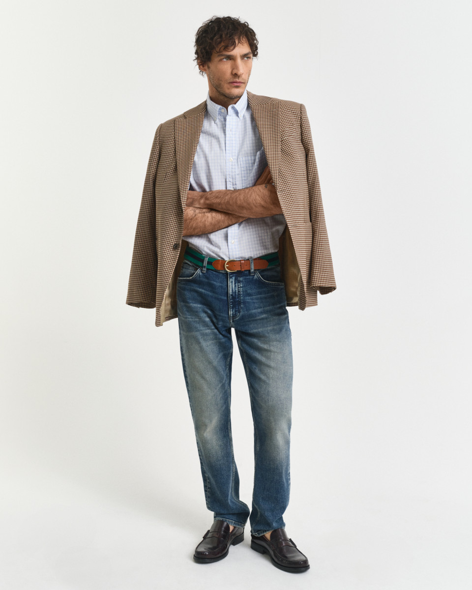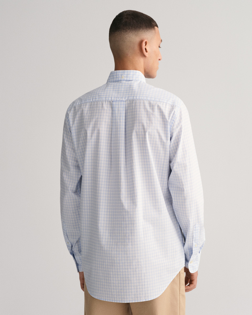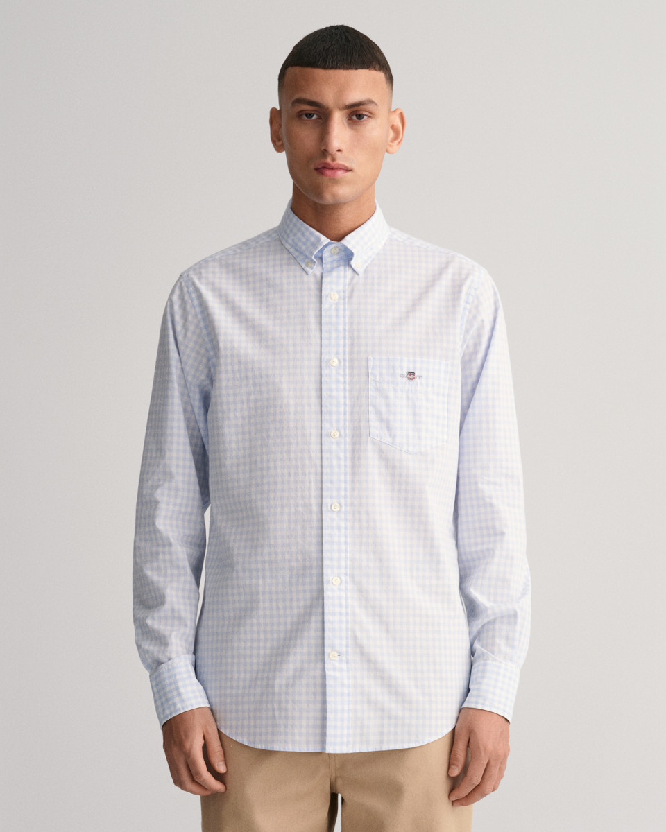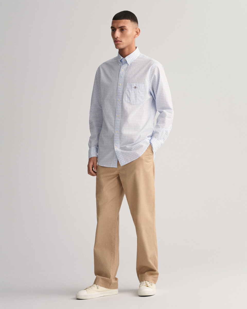 Normale Passform | Button-down-Kragen | Brusttasche | Verstellbare Manschetten | Knöpfe aus recyceltem Polyester | Kellerfalte mit Locker-Loop-Schlaufe am Rücken | Grafische GANT-Stickerei auf der Brusttasche | Mit ähnlichen Farben waschen.