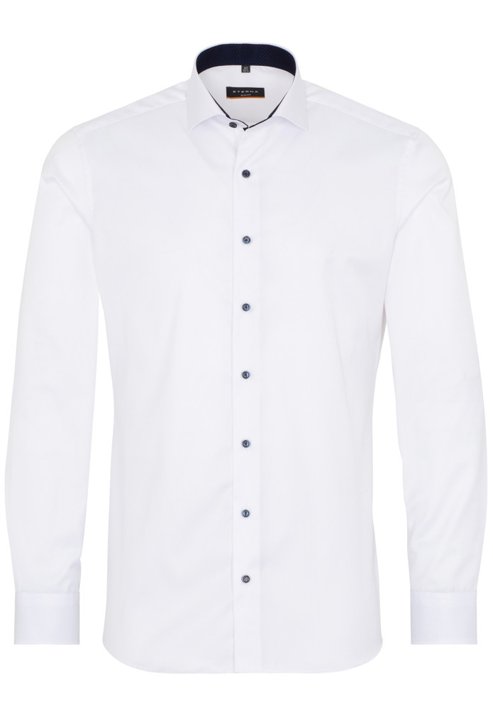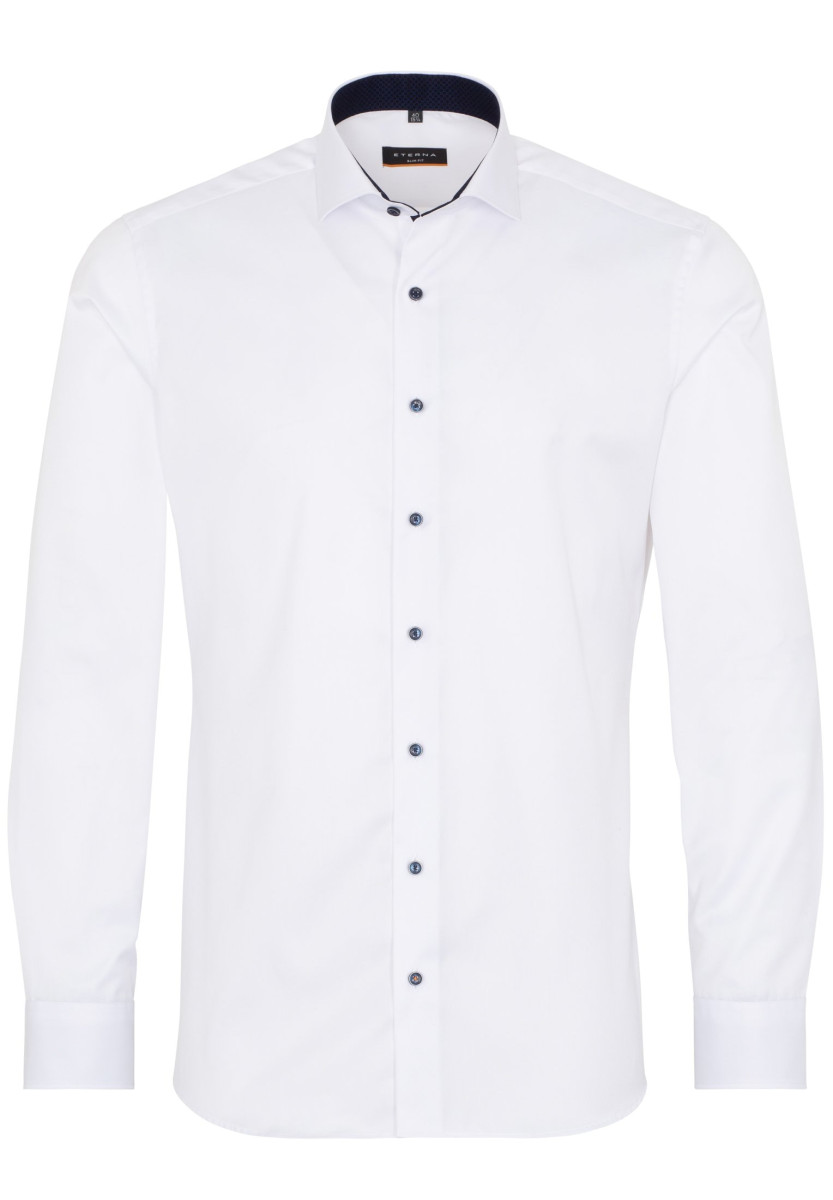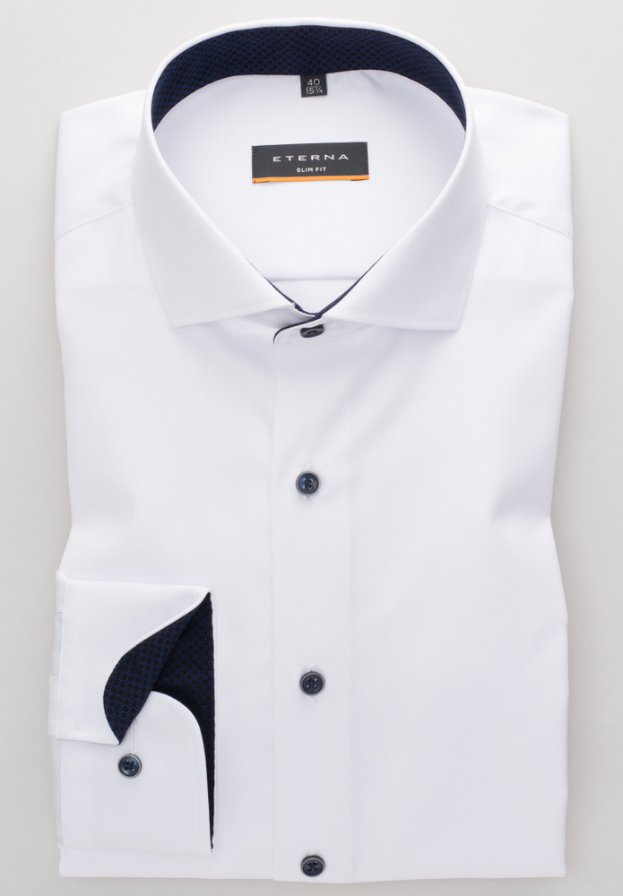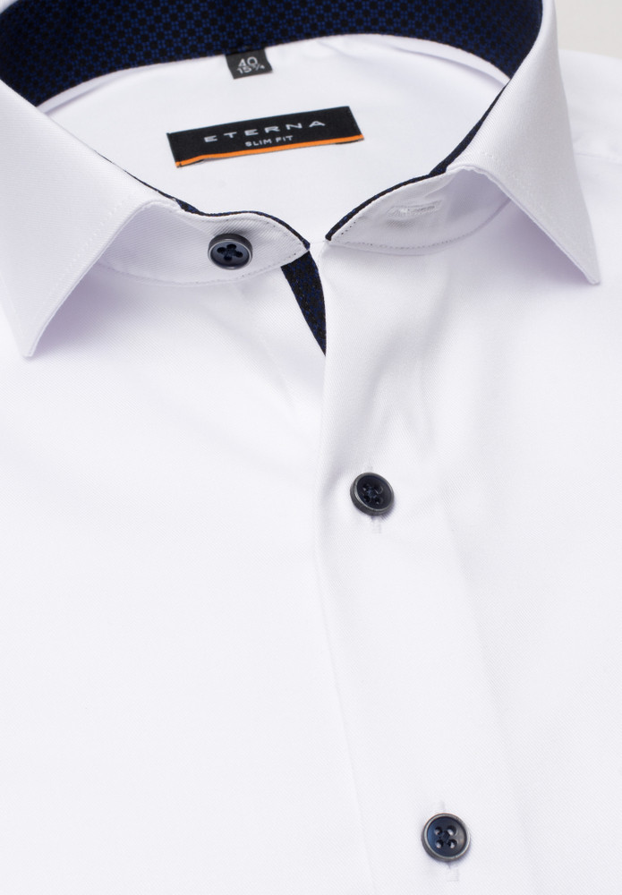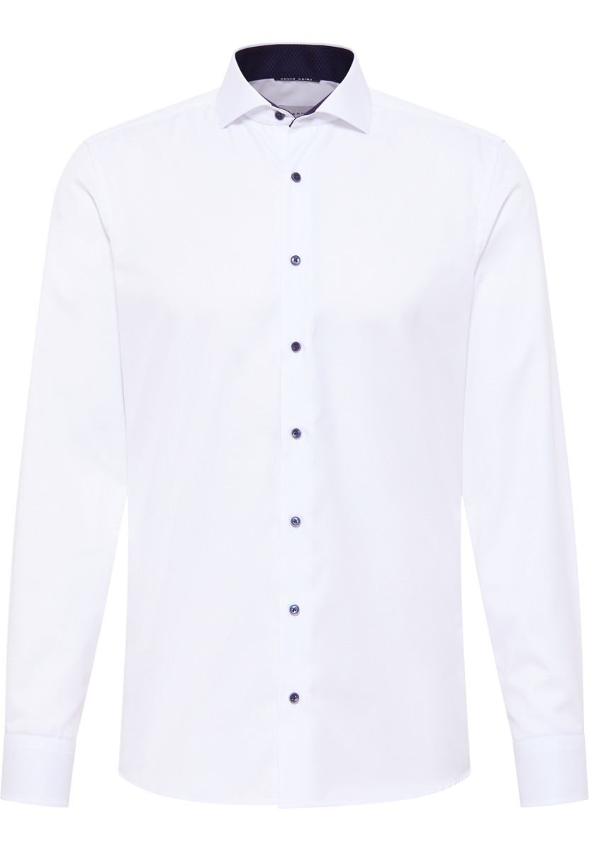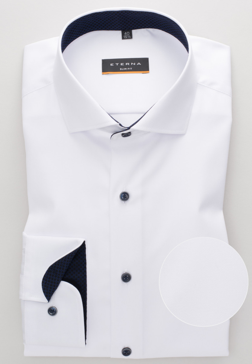 Das ETERNA COVER SHIRT - blickdicht - auch bei Tattoos! Dieses Hemd zeigt nur, was es auch zeigen soll. Zuverlässig verdeckt es Tattoos und Körperbehaarung. Mit diesem unifarbenen, blickdichten Herrenoberhemd in schmaler, figurbetonter Schnittführung liegen Sie modisch ganz weit vorne. Die modischen Kontrasteinsätze im Krageninnensteg des Hai-Kragens und an den Manschetten setzen modische Akzente und machen es sowohl im Beruf wie auch in der Freizeit zu einem absoluten Must-have für Ihren Kleiderschrank. Das eingearbeitete Band im Vorderteil ist ein zusätzlicher Eyecatcher. Als Half-Ply-Hemd aus 100% Baumwolle und in feinstem Twill bietet das ETERNA COVER SHIRT höchstenTragekomfort und ist außerdem bügelfrei. Das ETERNA COVER SHIRT ist nicht nur das perfekte Basic für die Businessgarderobe, sondern sorgt rund um die Uhr für einen stilsicheren Auftritt. Bestellen Sie heute noch dieses blickdichte Hemd (ohne Brusttasche) und überzeugen Sie sich von der erstklassigen Qualität und Verarbeitung unserer Produkte.