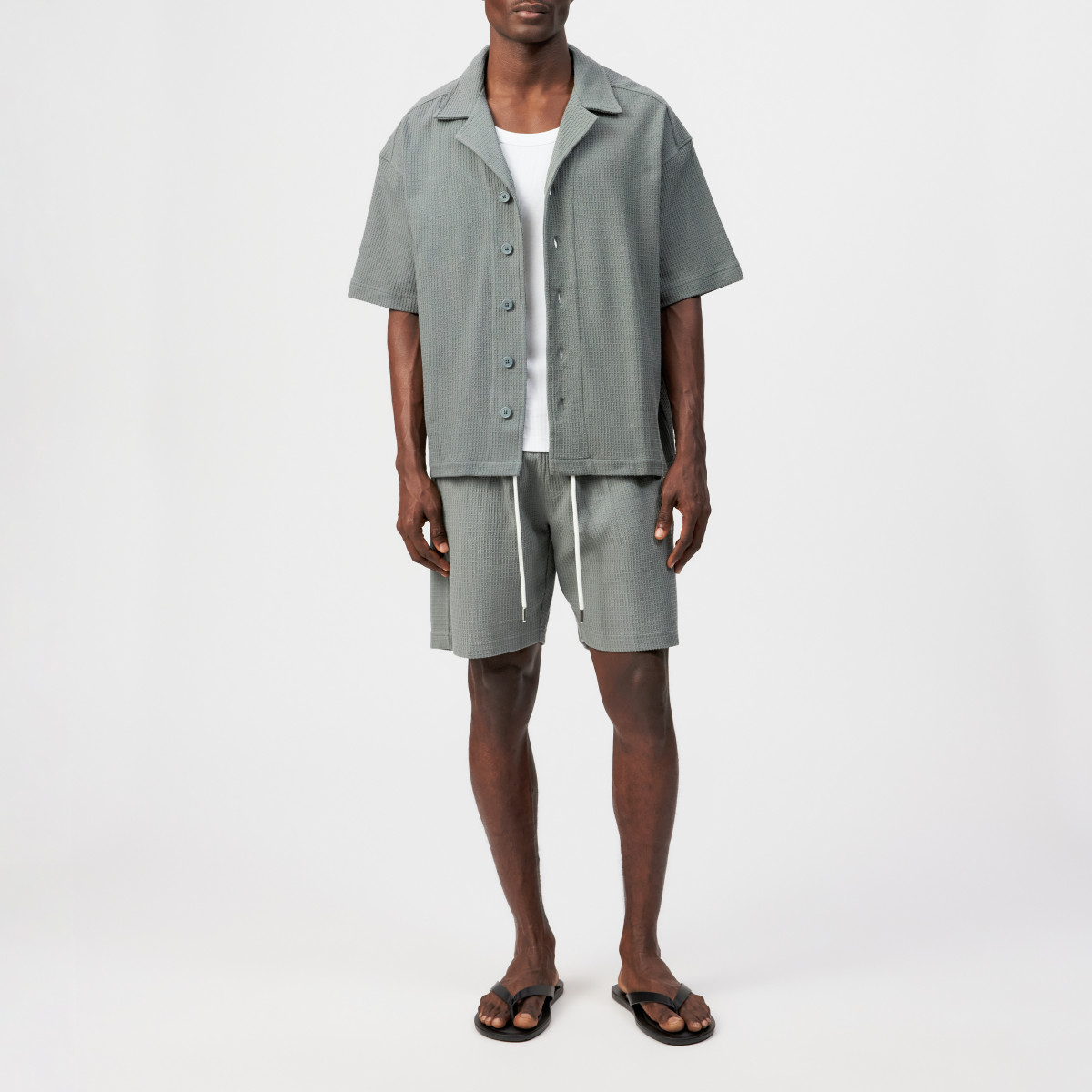 BASIIL ist ein Relaxed Fit Kurzarm Jerseyhemd mit klassischer Länge und einem modischen "Cuban Collar". Die Jersey-Qualität aus reiner Baumwolle in einer Waffel-Struktur verleiht dem Style eine sommerlich-sportive Note.