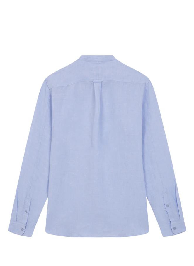 Dieses Hemd ist aus Leinenstoff gefertigt und mit einem eleganten Großvaterkragen versehen. Es ist für eine moderne Passform designed, hat einen abgerundeten Saum und einen Faltenaufsatz für zusätzlichen Komfort.