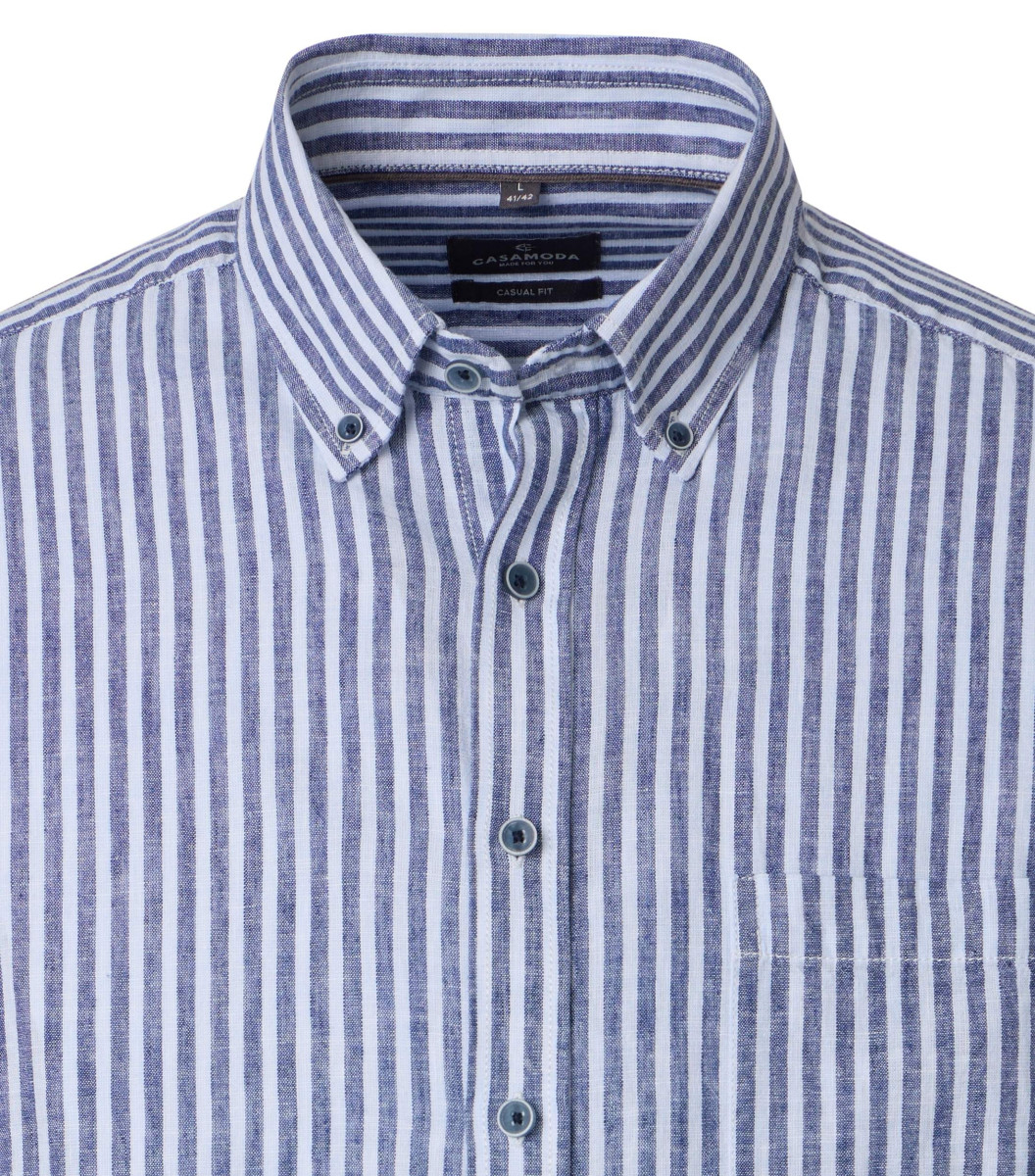 Dieses Leinenhemd verbindet Eleganz mit Funktionalität und sorgt dank seiner hochwertigen Leinenmischung für ein angenehm kühles Tragegefühl sowie eine ansprechende, strukturierte Optik. Das dezente Streifenmuster setzt stilvolle Akzente und ermöglicht Ihnen vielfältige Kombinationen, ob mit einer klassischen Chinohose im Büro oder leger zu einer Jeans in der Freizeit. Durch den Casual Fit genießen Sie eine komfortable Passform, die nicht zu eng und nicht zu weit sitzt, wodurch Bewegungsfreiheit und Wohlbefinden im Alltag gewährleistet werden. Der praktische Button-Down-Kragen sorgt dafür, dass der Kragen immer in Form bleibt und das Gesamtbild gepflegt erscheint. Eine Brusttasche verleiht dem Freizeithemd zusätzliche Funktionalität, sodass Sie kleine Utensilien sicher verstauen können. Ideal geeignet für entspannte Freizeitaktivitäten, einen Stadtbummel oder ein Treffen mit Freunden überzeugt dieses Hemd mit seiner Kombination aus Tragekomfort und zuverlässig edler Ausstrahlung.Lief.-Art-Nr: 126130540