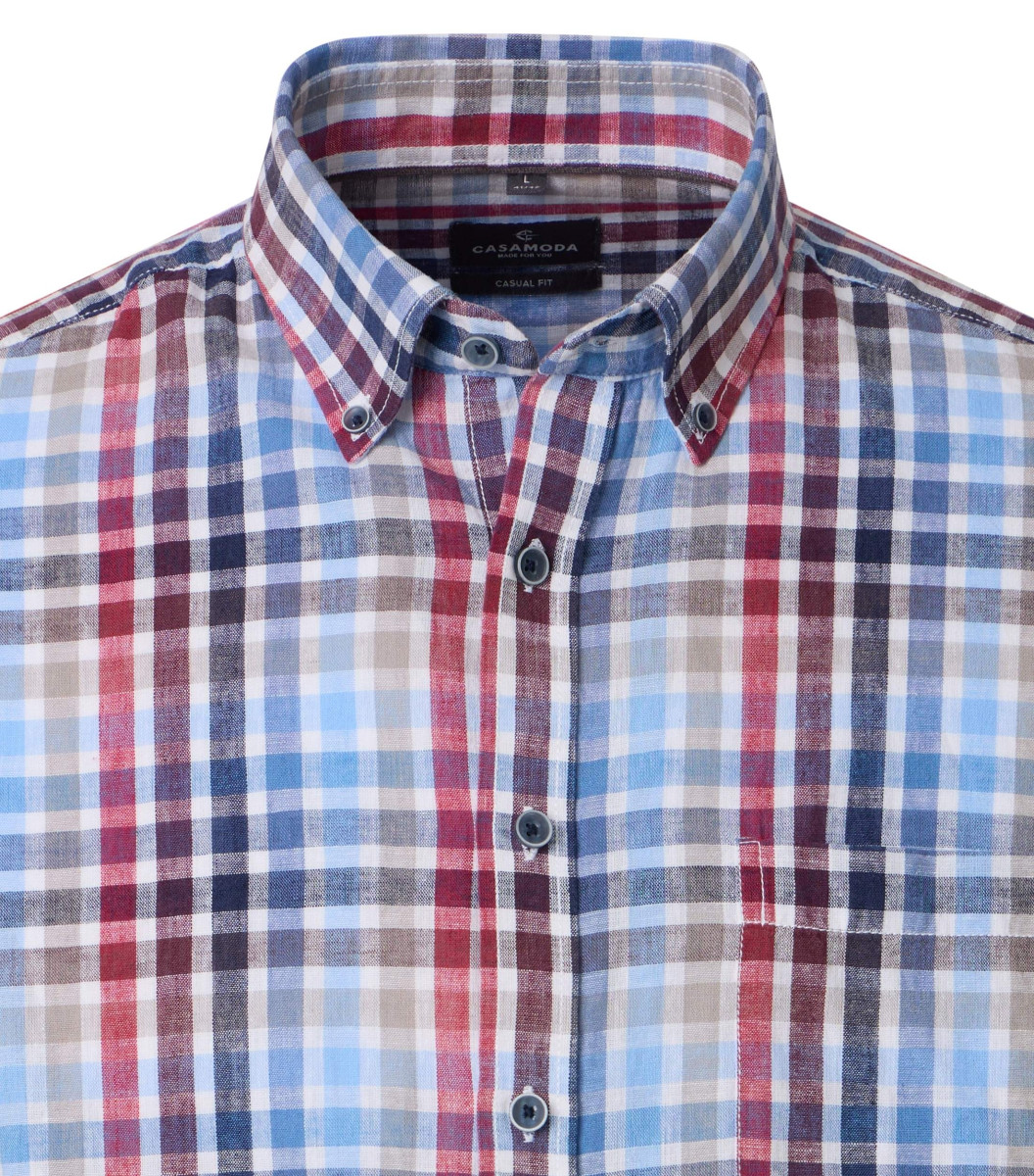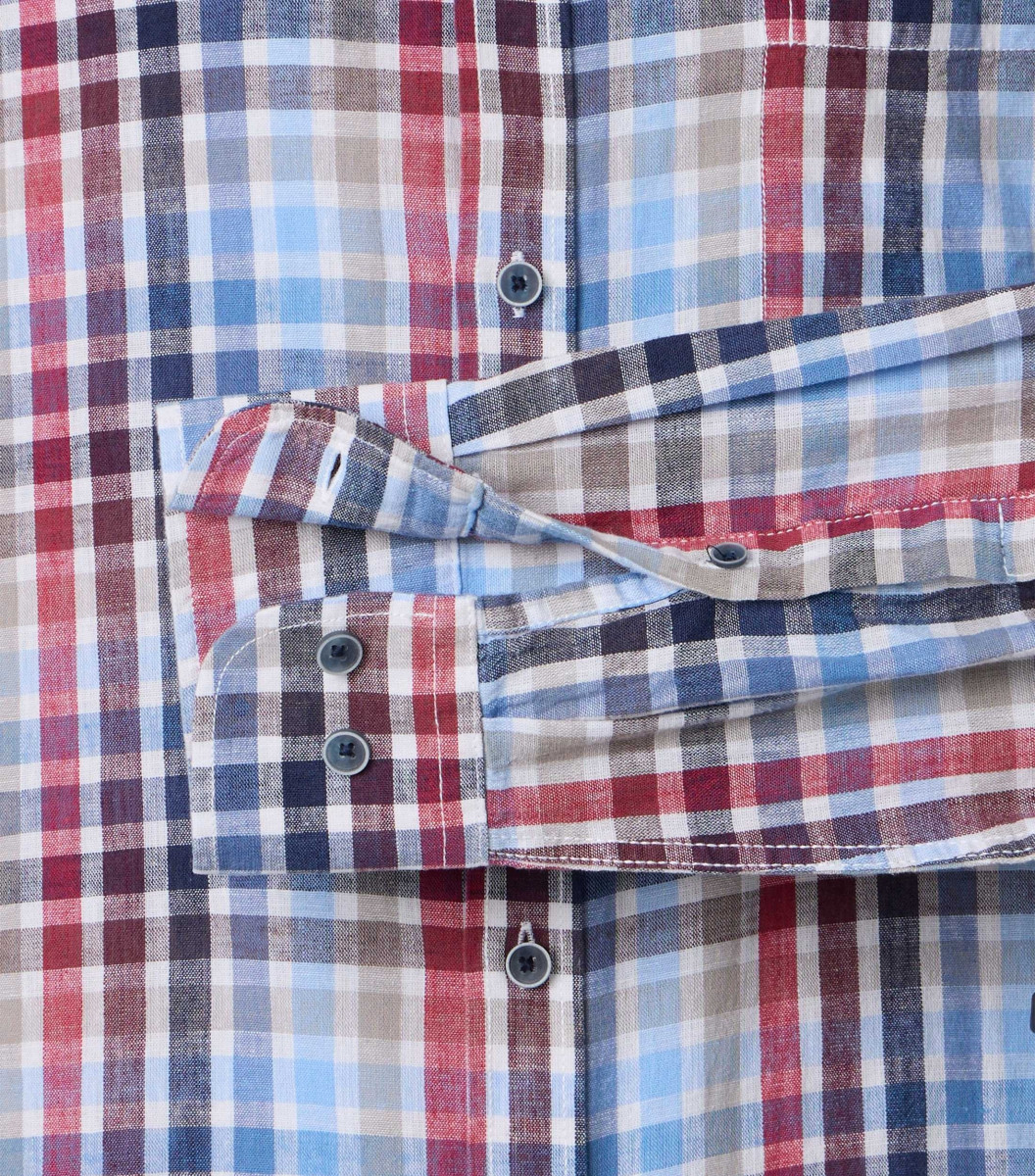 Das Leinenhemd überzeugt durch einen modernen Look und eine angenehme, normale Passform, die Bewegungsfreiheit und Komfort im Alltag garantiert. Dank der hochwertigen Leinenmischung erleben Sie ein besonders angenehmes Tragegefühl, das selbst an warmen Tagen für ein kühles und strukturiertes Empfinden sorgt. Das modische Karodesign und der klassische Button-Down-Kragen bringen einen eleganten, aber entspannten Stil in Ihre Garderobe, während die praktische Brusttasche nützlichen Stauraum für kleine Alltagsgegenstände bietet. Die Langarm-Ausführung eignet sich ideal, wenn Sie ein Sommerhemd suchen, das vielseitig kombinierbar ist. Dieses Leinenhemd können Sie perfekt mit einer Chinohose oder einer lässigen Jeans für verschiedenste Anlässe im Büro oder in der Freizeit tragen und dabei stets gepflegt auftreten. Das Hemd aus Leinen Baumwollmix ist ein zuverlässiger Begleiter, der rationalen Ansprüchen bei Qualität und Funktionalität entspricht.Lief.-Art-Nr: 126130560