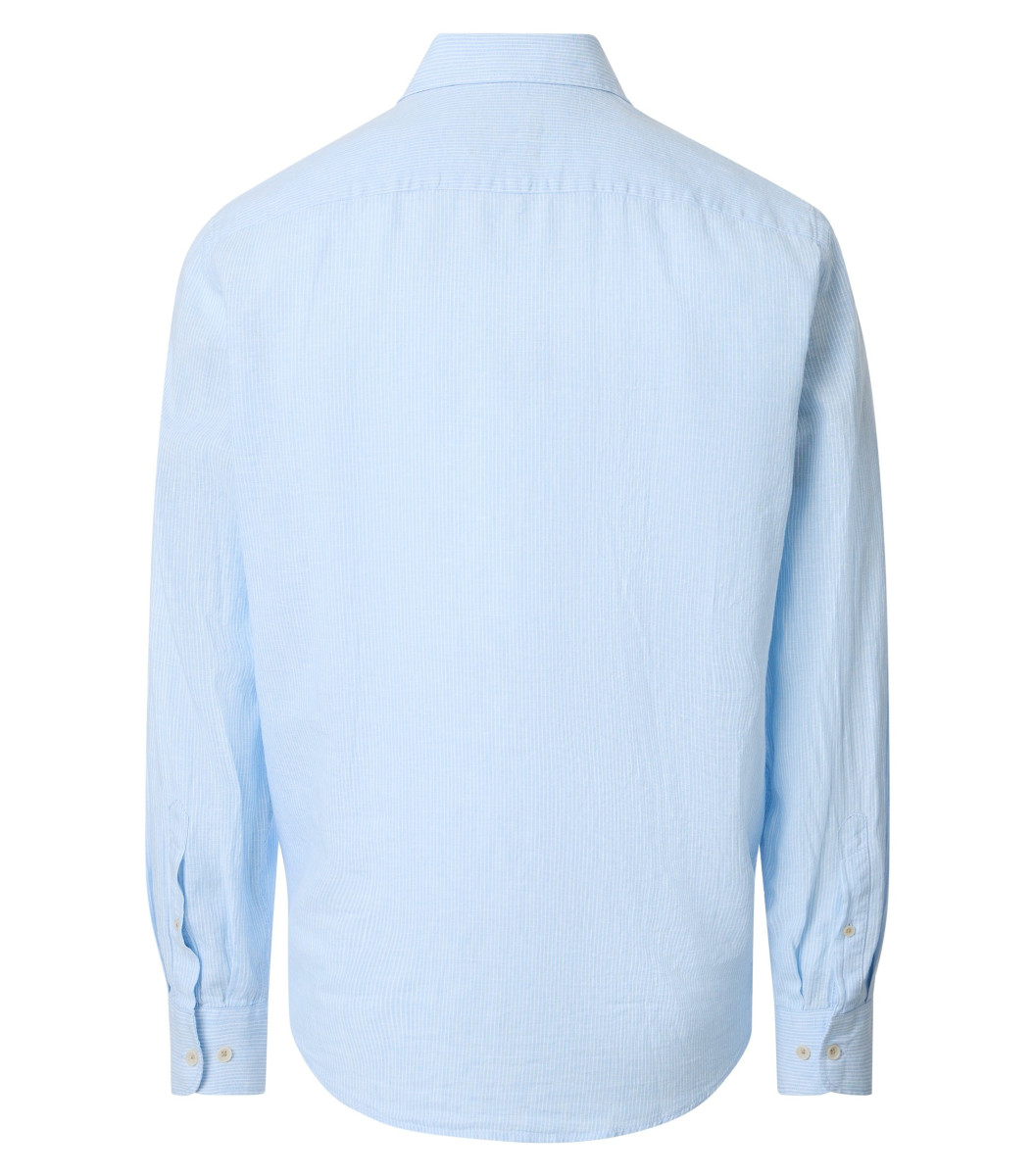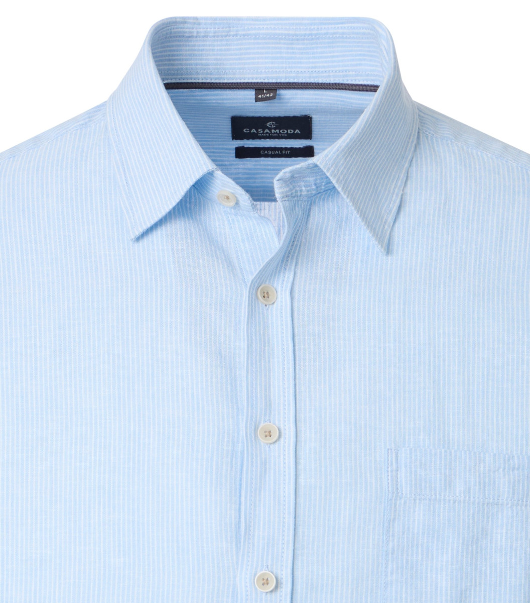 Das Leinenhemd verbindet eine normale Passform mit einem angenehmen Tragekomfort und eignet sich optimal für entspannte Freizeitaktivitäten. Dank der hochwertigen Leinenmischung erleben Sie einen kühlenden Effekt auf der Haut, was vor allem an wärmeren Tagen überzeugt. Der klassische Kent-Kragen unterstreicht das dezente Streifenmuster, das für einen stilvollen und zugleich lässigen Auftritt sorgt. Praktisch ist die integrierte Brusttasche, in der sich kleine Gegenstände leicht unterbringen lassen. Durch den Langarm bietet das Freizeithemd Vielseitigkeit und lässt sich ideal mit einer Jeans oder Chinohose sowie einem legeren Sakko kombinieren. Die Leinenmischung verleiht dem Hemd die nötige Struktur und sorgt dafür, dass Sie jederzeit gepflegt erscheinen. Mit diesem Modell profitieren Sie von Effizienz und einfacher Pflege, während das natürliche Material für ein angenehmes Gefühl sorgt.Lief.-Art-Nr: 126130580