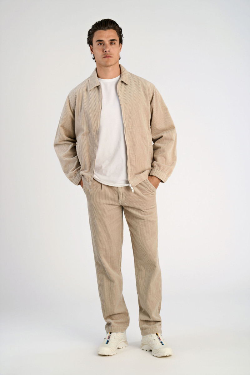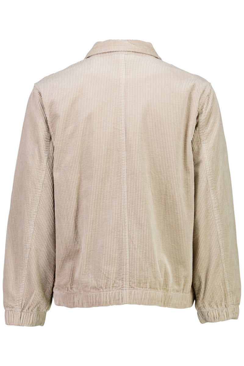 Leichte Jacke aus Baumwollcord. Mit einem 2-Wege-Reißverschluss und elastischen Kanten an den Ärmelabschlüssen und am Saum der Jacke. Es gibt zwei offene Seitentaschen und eine Innentasche.