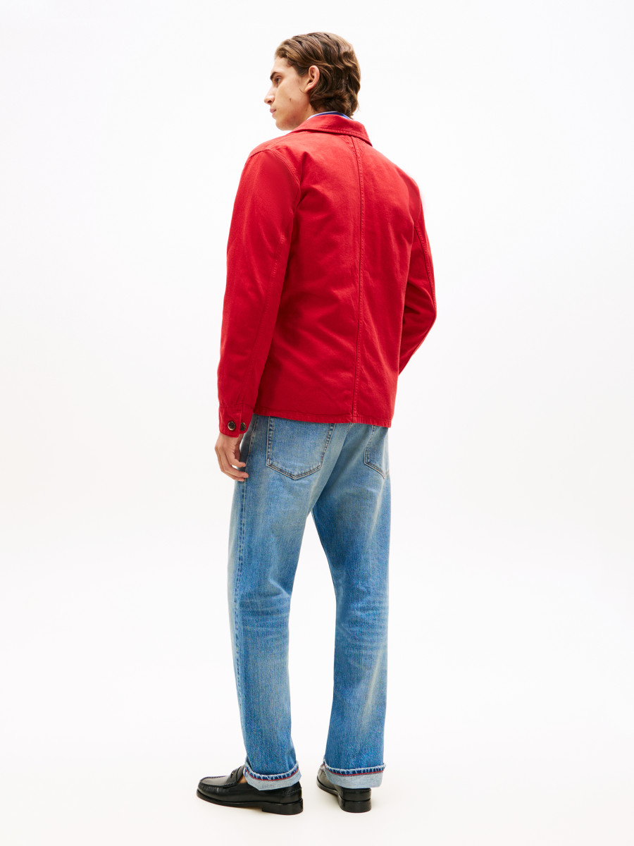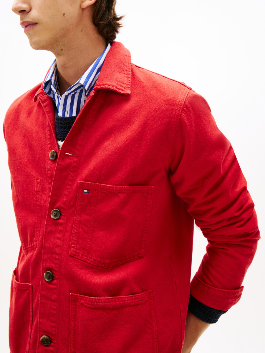 Diese Herren Chore-Jacke präsentiert sich im utilitaristischen Stil mit einer garment-dyed Färbung für einen leicht vintagehaften Look. Praktische Details wie eine Knopfleiste, ein halboffener Kragen, zwei aufgesetzte Brusttaschen, zwei aufgesetzte Seitentaschen und Zweiknopf-Manschetten sorgen für Funktionalität im Alltag. Dezente Logodetails und eine Flaggen-Stickerei auf der Brusttasche runden das Design ab und machen die Jacke zu einem vielseitigen Begleiter Ihrer Garderobe.Lief.-Art-Nr: MW0MW42333/CHORE JACKET GMD