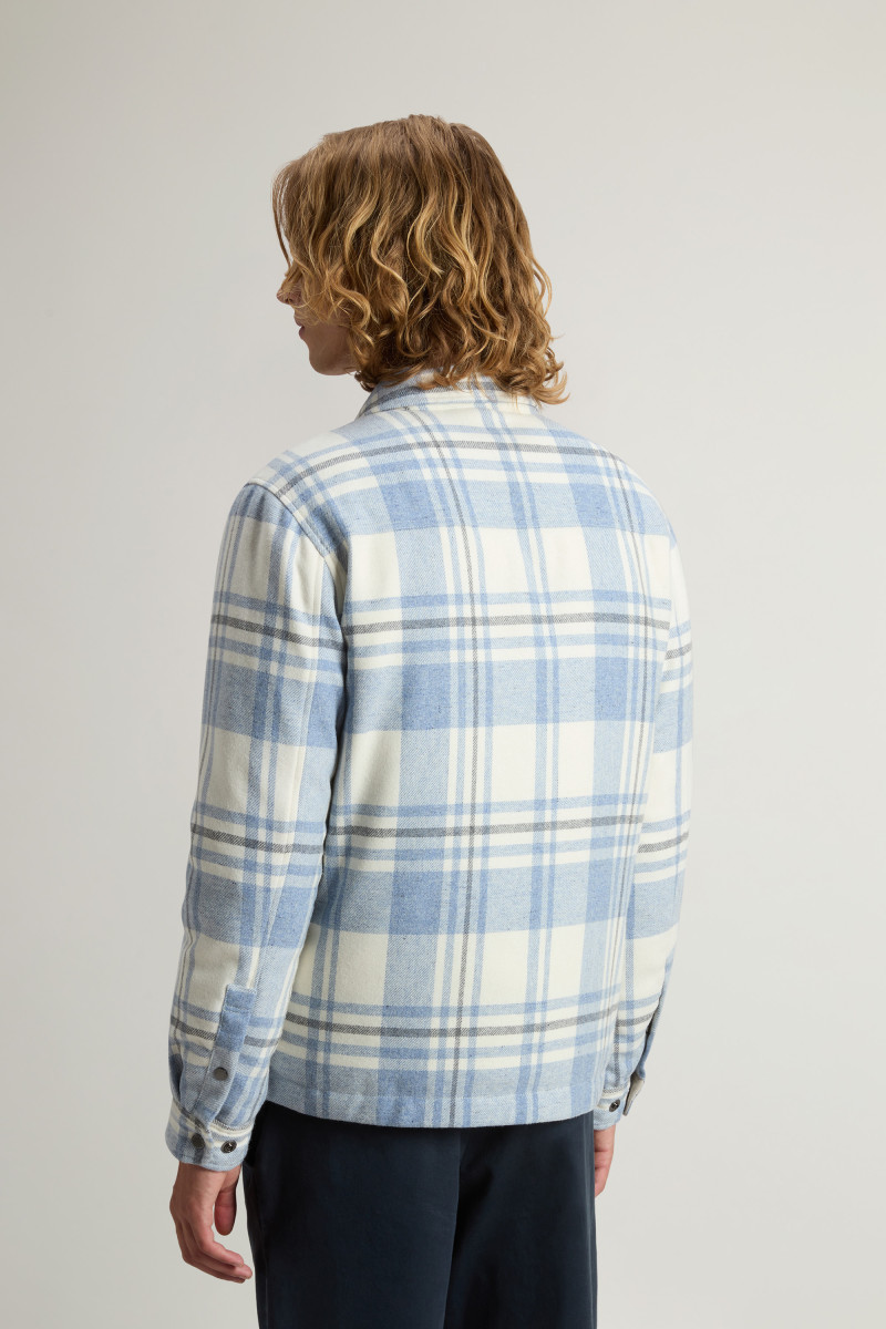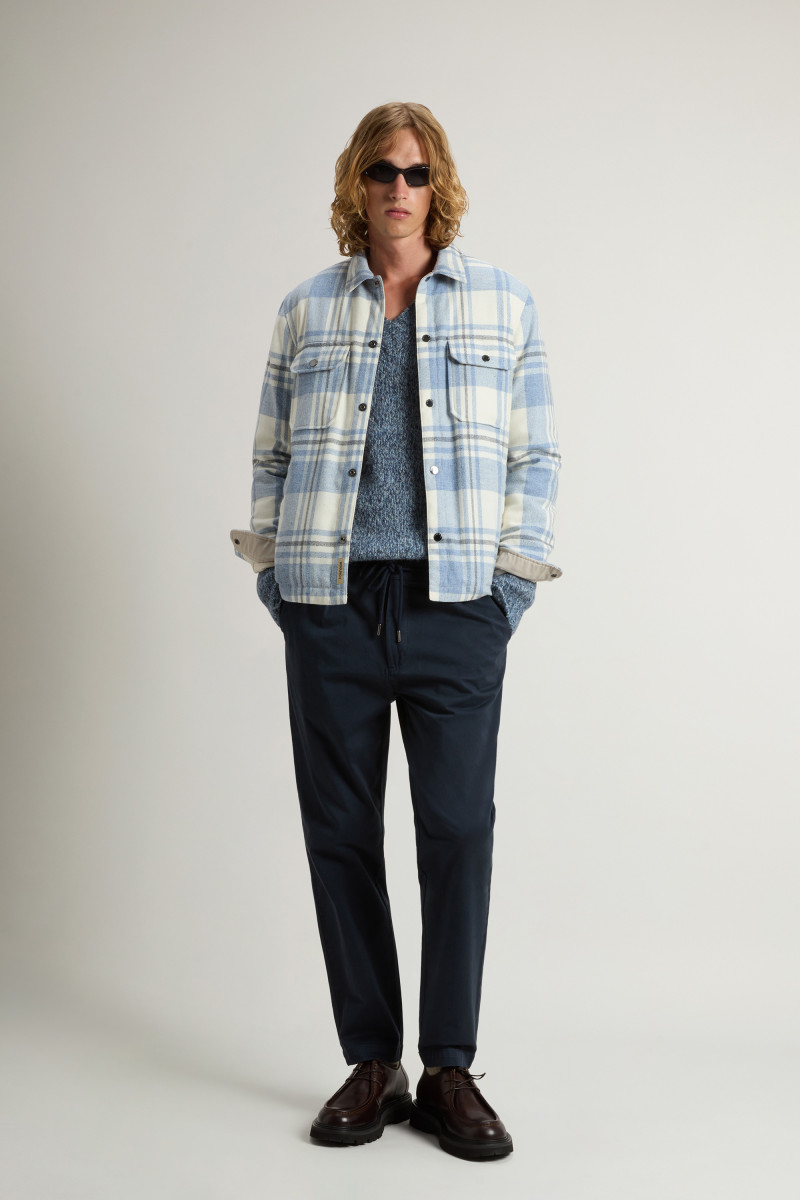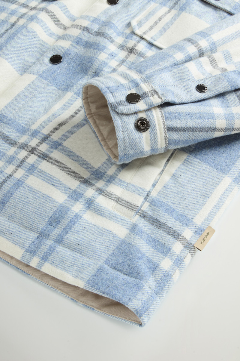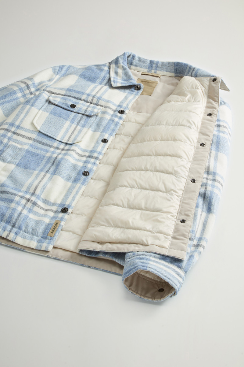 Das Overshirt Alaskan Check ist eine trendige Neuinterpretation eines ikonischen Klassikers aus dem Woolrich-Archiv. Das schlichte und funktionale Design wird durch Details wie den Hemdkragen mit abnehmbarer Lasche und vier praktische Taschen ergänzt: zwei aufgesetzte Brusttaschen mit Patte und zwei Paspeltaschen mit seitlicher Öffnung. Es ist aus recyceltem italienischem Wollmischgewebe gefertigt und mit Entendaunen gefüttert, die für eine exzellente Wärme sorgen, ohne zu beschweren. Vervollständigt wird das Modell durch einen Verschluss mit Druckknöpfen und verstellbare Ärmelabschlüsse.