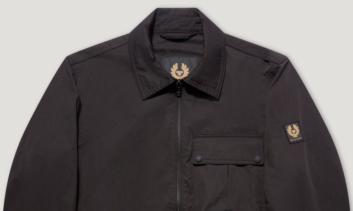 Das Drome Überhemd in Schwarz ist ein vielseitiger Style mit Belstaff-Utility-Taschen mit Falten. Es ist aus Baumwoll-Nylon-Gabardine gefertigt, der Baumwollgarn mit starken Nylonfäden kombiniert, um Weichheit und eine smarte Optik zu erzielen. Das wasserabweisende Finish ist perfekt für schlechtes Wetter.