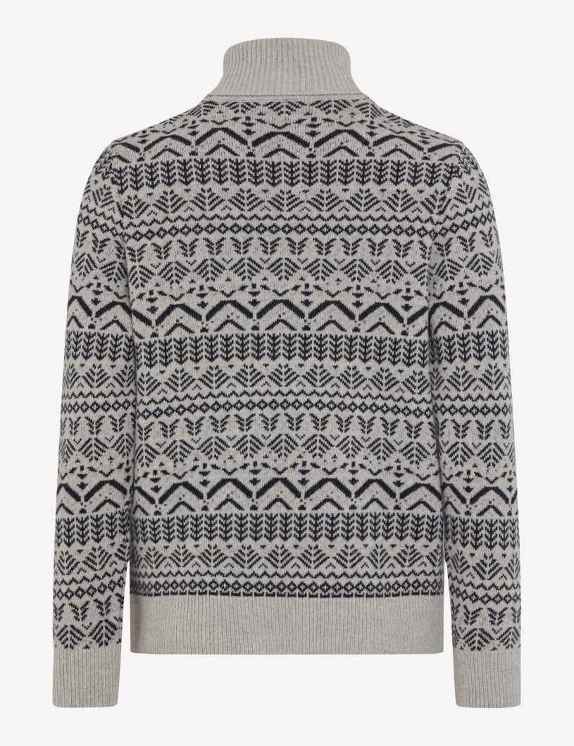 Auf der Suche nach einem modernen Klassiker überzeugt der Strickpullover im STYLE BRIAN mit winterlichem Charme. Zurückhaltend mit gerader Silhouette und Rollkragen, setzt er durch das markante Jacquard-Muster Akzente. Der schlicht gestaltete Saum, Ärmelbündchen und Kragen runden das Design ab. Der hochwertige Wollmix sorgt für ein angenehm weiches Tragegefühl und natürliche Wärme. Die exklusive Soft Wool Qualität garantiert zudem eine luxuriöse Haptik und optimale Isolierung, wodurch dieser Pullover zu Ihrem unverzichtbaren Begleiter an kühlen Herbst- und Wintertagen wird.