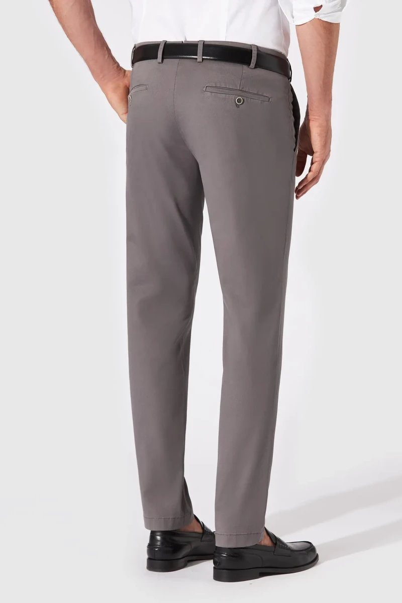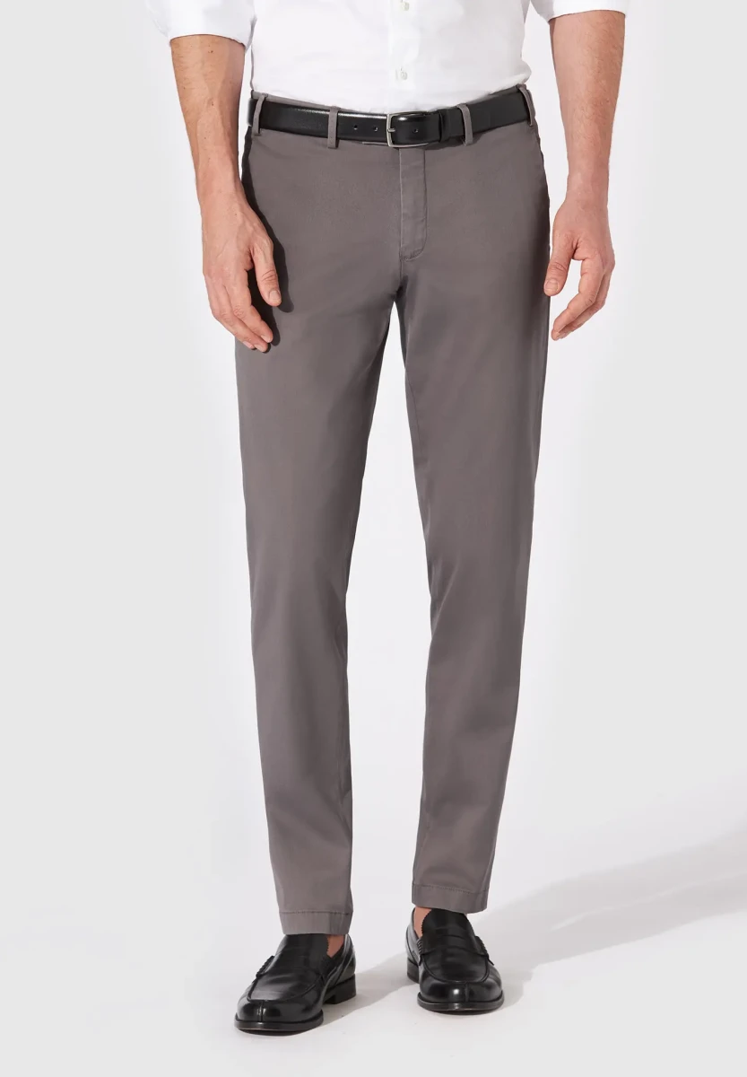 Perfetto steht bei HILTL für die perfekte Hose, entwickelt seit 1955. Der Perfetto Twill verbindet Strapazierfähigkeit mit einem luxuriösen, kaschmirweichen Griff, erreicht durch ein Schmirgelverfahren mit diamantbesetzten Walzen und eine spezielle Enzymwäsche. Die Tricotine-Bindung sorgt für eine knitterarme Optik. Besonderheiten sind der After Dinner Split für mehr Bundflexibilität und der beidseitig eingefasste HILTL Metallreißverschluss für eine ruhige Optik der Vorderhose. Der Slim Fit und die niedrige Leibhöhe sorgen für eine moderne, schmale Silhouette, während klassische Details wie der französische Tascheneingriff, die Paspeltaschen und der Drei-Punkt Bundverschluss den hochwertigen Look abrunden. Die dezente Handstichoptik und der änderungsfreundliche Schneiderbund unterstreichen die Exklusivität dieser Hose.
