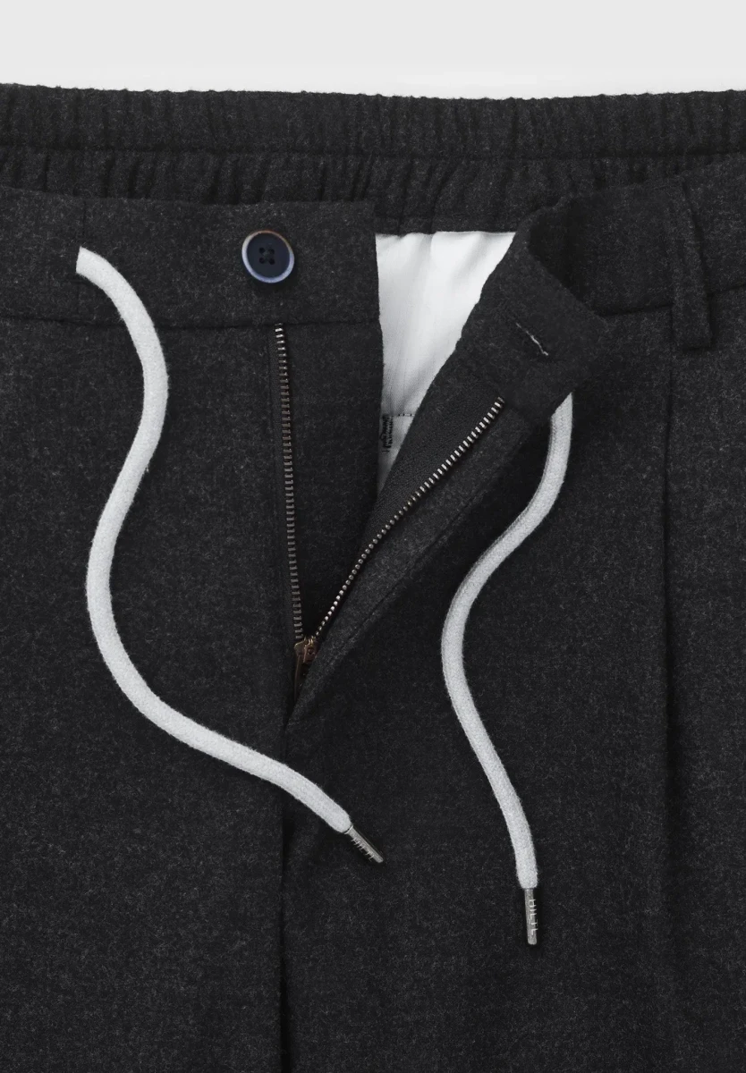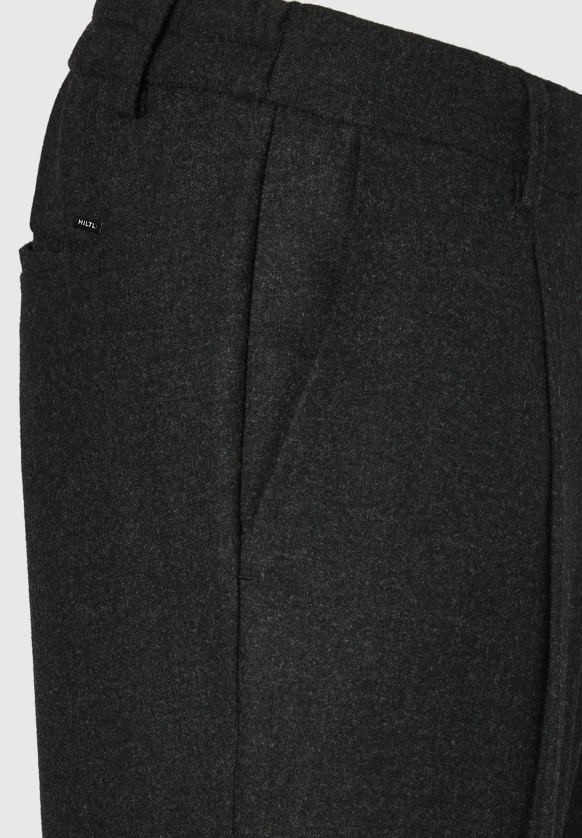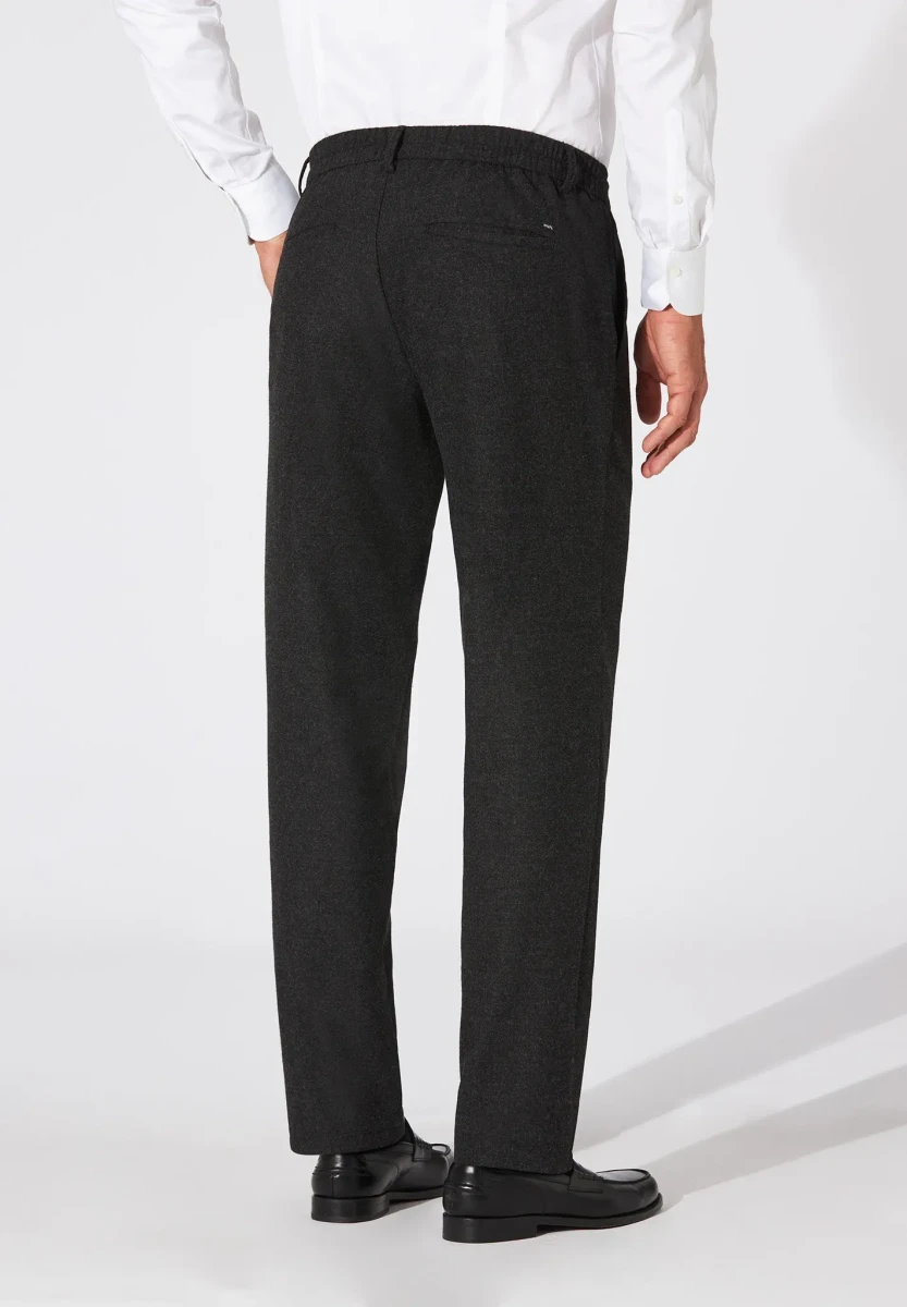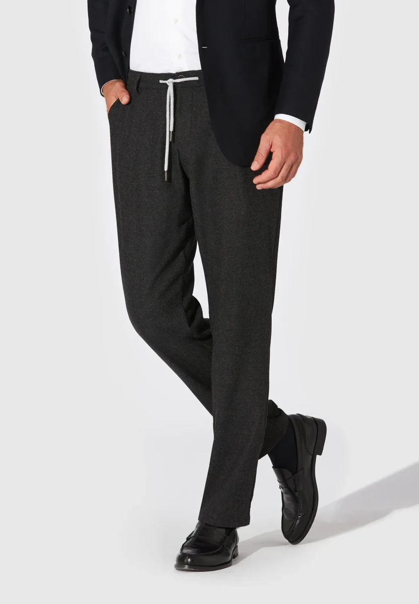 Das Modell Tani interpretiert die klassische Chino auf moderne, sportive Weise. Der feine Tweed-Look kombiniert mit einem hochwertigen Materialmix sorgt für einen weichen Griff, hohe Formstabilität und angenehme Elastizität. Zugleich bleibt das Gewebe strapazierfähig und knitterarm – ideal für den Alltag und den Business-Kontext. Die Slim Fit-Passform mit niedriger Leibhöhe verleiht der Hose eine moderne Silhouette. Durch die sportive Bundverarbeitung mit elastischem Bund und Kordelzug erhält sie zusätzlichen Tragekomfort und einen zeitgemäß-lässigen Charakter. Französische Eingrifftaschen und dezente Paspeltaschen hinten unterstreichen die elegante Ausrichtung.