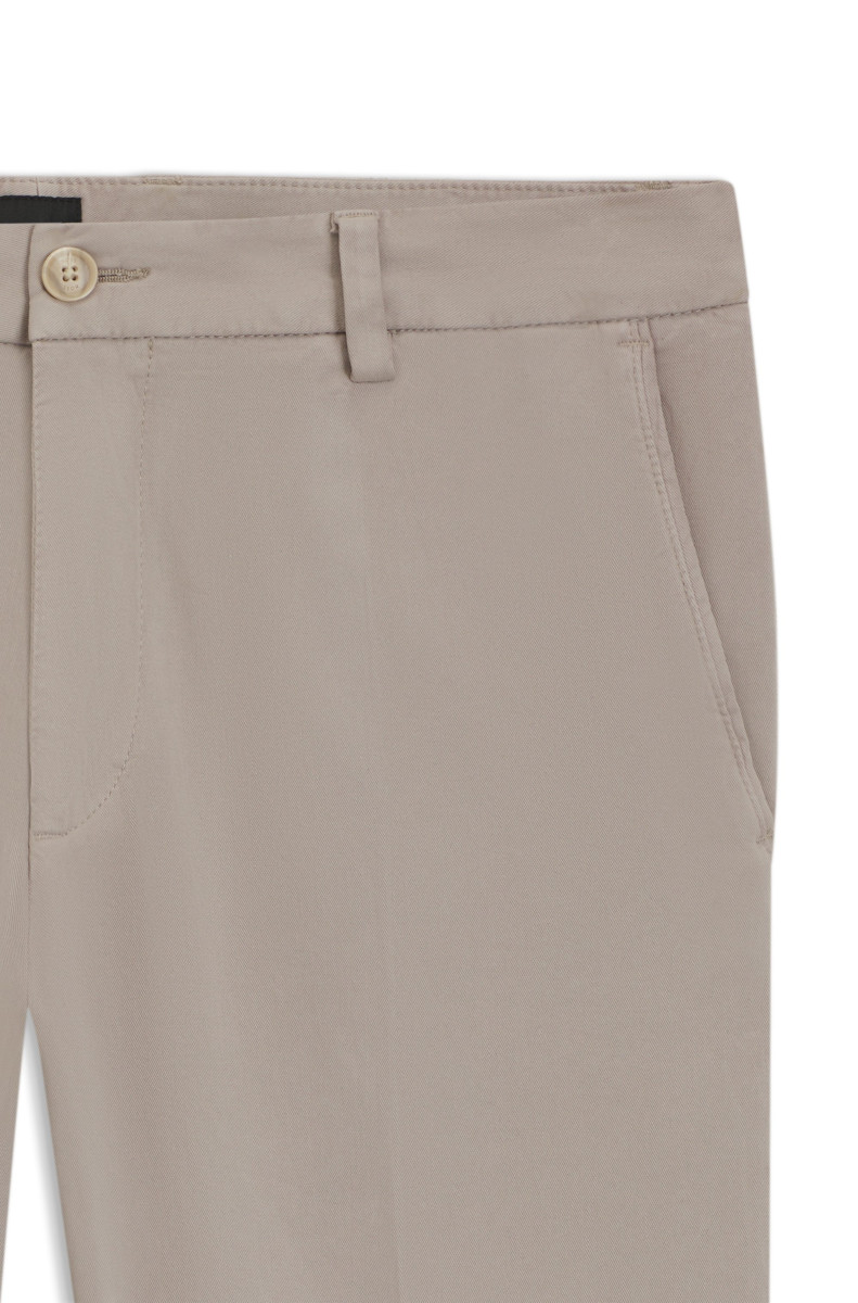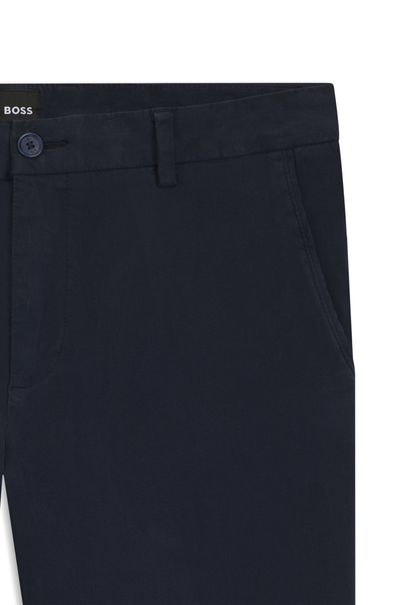 Die BOSS Hose aus weich gebürstetem Baumwoll-Twill mit Elasthan-Anteil wertet deine Casual-Looks auf. Mit moderner Passform und mittelhohem Bund.