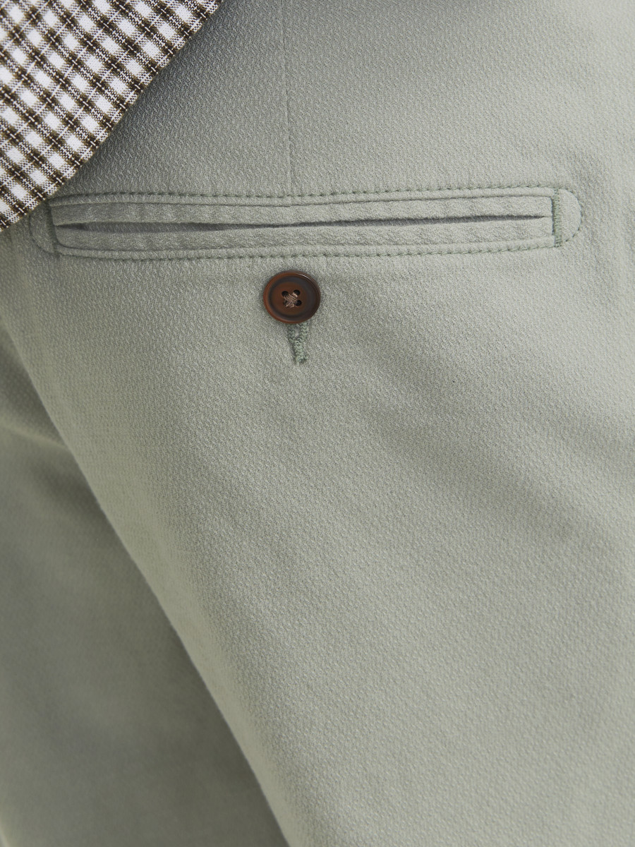 Die Chino-Hose ist in dieser Kategorie ein essenzieller Style. Sie steht zwischen Anzughose und lässiger Five-Pocket-Hose. Das Styling ist schlicht, Taschen gibt es nur vorn und hinten.Hergestellt mit einer speziellen Webart, die dem Schaftgewebe ein geometrisches Muster verleiht. - Produkttyp : Chino Hose - Verschluss : Reißverschluss - Taille : Niedrige Taille - Länge/Größe : Verkürzt, knöchellang - Beindetails : Säume zum Umschlagen - Passform : Slim Fit mit tief sitzendem Bund, schmalen Knien und schmalen Beinöffnungen