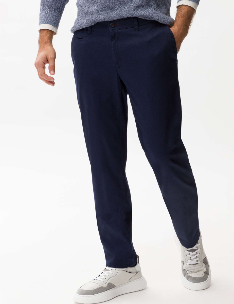 Der Style FABIO IN ist ein Key-Piece für Herren. Smart mit Hemd oder modern mit Pullover - die Chino gefällt im klassischen und legeren Look. Die Modern Fit Herrenhose ist modisch und vielseitig mit schlanker Passform und regulärer Leibhöhe. Eine ansprechende Optik erhält die Hose insbesondere durch das aufwendige Taschendesign. Zusätzlich ist sie mit Ziernieten und Kunstlederbesatz gestaltet. Movement without limits: Die extrem elastischen Hi-Flex-Fasern garantieren Ihnen durch High Stretch unendliche Bewegungsfreiheit - exclusive by BRAX. Selbstbewusst und spannend ist darüber hinaus die Struktur, die mit ihrem effektvollen Warenbild das Material belebt. Der unempfindliche und hautfreundliche Baumwollmix bietet außerdem bei dieser Flatfronthose ein erstklassiges Tragegefühl.Lief.-Art-Nr: STYLE.FABIO IN NOS/80-1750/22 07882020