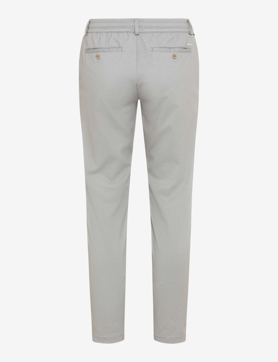 Smart, clean und mit lässiger Coolness – die Chino im Style Phil bringt modernen Komfort auf den Punkt. Ihr Tapered Fit mit gerader, leicht zulaufender Silhouette sorgt für eine zeitgemäße Linie mit französische Taschen und Leistengesäßtaschen für den typischen Look. Der teilelastische Bund mit Kordelzug punktet nicht nur optisch, sondern auch funktional – je nach Stimmung lässt sich die Kordel innen oder außen tragen. Das feine, tonale Minimalmuster verleiht der Hose eine stylishe Struktur, die von der melierten Innenseite mit sportivem Twist perfekt ergänzt wird. Der Jersey-Mix fühlt sich angenehm soft an, bleibt formstabil und bietet durch den Stretchanteil volle Bewegungsfreiheit. Dank Hi-FLEX genießen Sie maximale Elastizität und ein dauerhaft perfektes Tragegefühl – egal ob im Office oder in der Freizeit.Lief.-Art-Nr: STYLE.PHIL K/07-5542/07 07287320