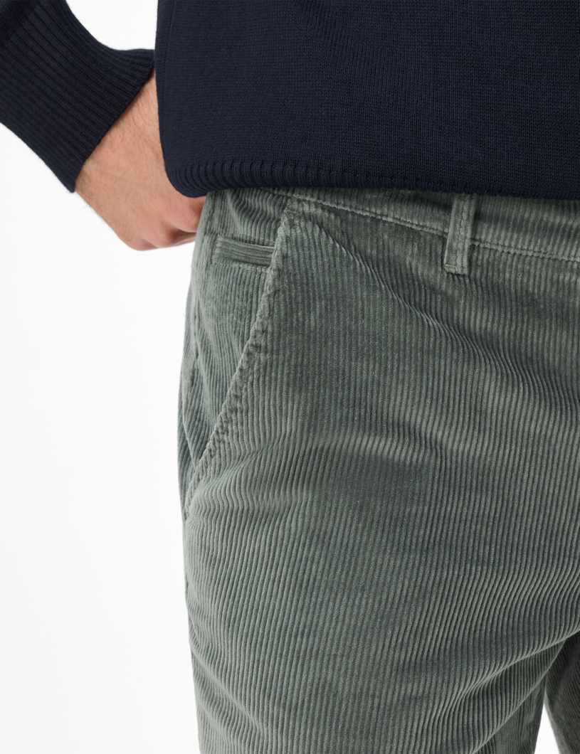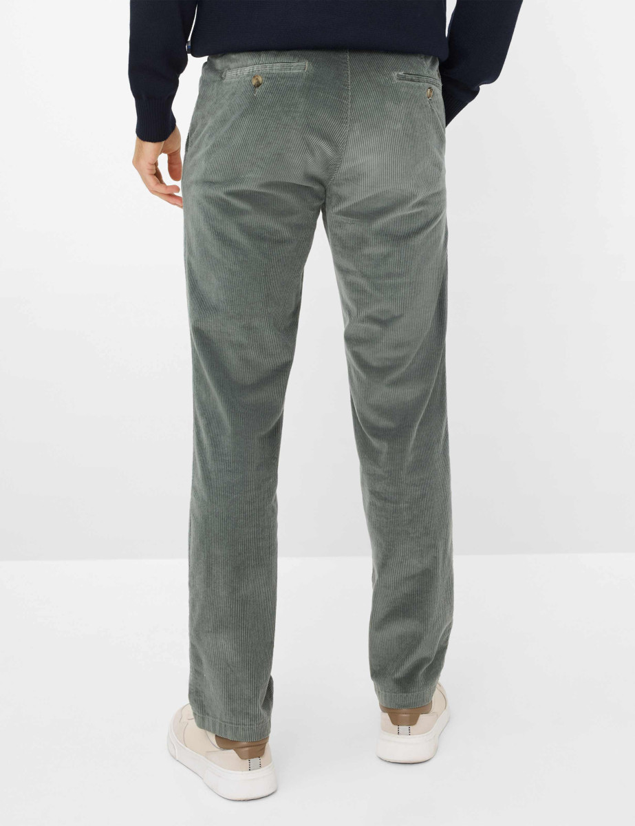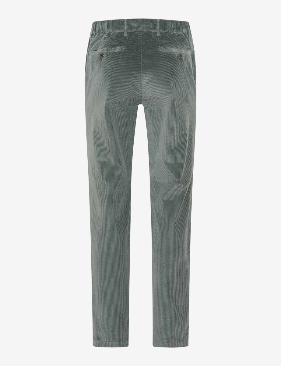 Klassisch im Look, modern im Komfort: Die Flatfront-Hose im STYLE THILO von Eurex kombiniert eine gepflegte Optik mit funktionalem Design. Die feine Cordstruktur verleiht der Chino eine maskuline, stilvolle Ausstrahlung, während der gerade Schnitt für eine schlanke Silhouette sorgt. Dezente Details wie seitliche Eingrifftaschen, eine integrierte Safety Pocket sowie ein Verschluss mit Reißverschluss und Knopf unterstreichen den alltagstauglichen Charakter. Für spürbaren Tragekomfort sorgt der speziell entwickelte Bestformer Komfortbund: Dank seitlicher Stretcheinsätze passt sich dieser flexibel an die Körperform an und kann sogar eine halbe bis ganze Konfektionsgröße ausgleichen – ideal für Männer, die sich Bewegungsfreiheit ohne Kompromisse wünschen. Ergänzt wird der Tragekomfort durch den Perfect Cut mit vorne leicht verkürzter und hinten erhöhter Leibhöhe. Das Ergebnis: perfekter Sitz ohne Verrutschen oder Einschneiden – selbst bei längerem Tragen. Das hochwertige Cordgewebe aus Baumwolle, Lyocell und Elasthan verbindet eine angenehm weiche Haptik mit Formstabilität und natürlicher Atmungsaktivität. Der Lyocell-Anteil verleiht dem Stoff eine glatte, edle Oberfläche, während Elasthan für zusätzliche Bewegungsfreiheit sorgt.