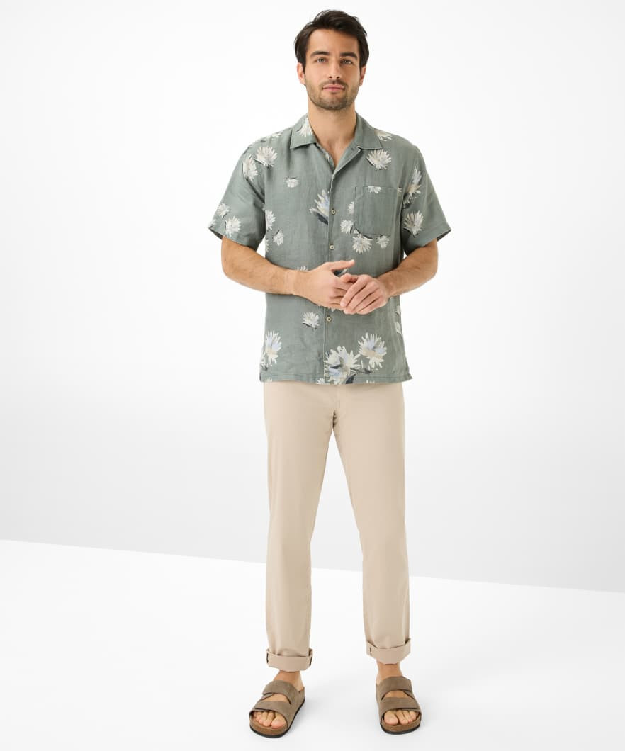 Ein Trend-Piece für Herren ist der Style CADIZ. Modebewusst und smart kombinieren Sie bequeme Sneaker mit dieser Five-Pocket-Hose. Die Straight Fit Herrenhose wirkt durch die klassische Passform mit regulärer Leibhöhe und geradem Bein. Eine typische Optik erhält die Hose insbesondere durch das aufwendige Taschendesign. Zusätzlich ist sie mit Ziernieten und Hotfix-Motiv gestaltet.