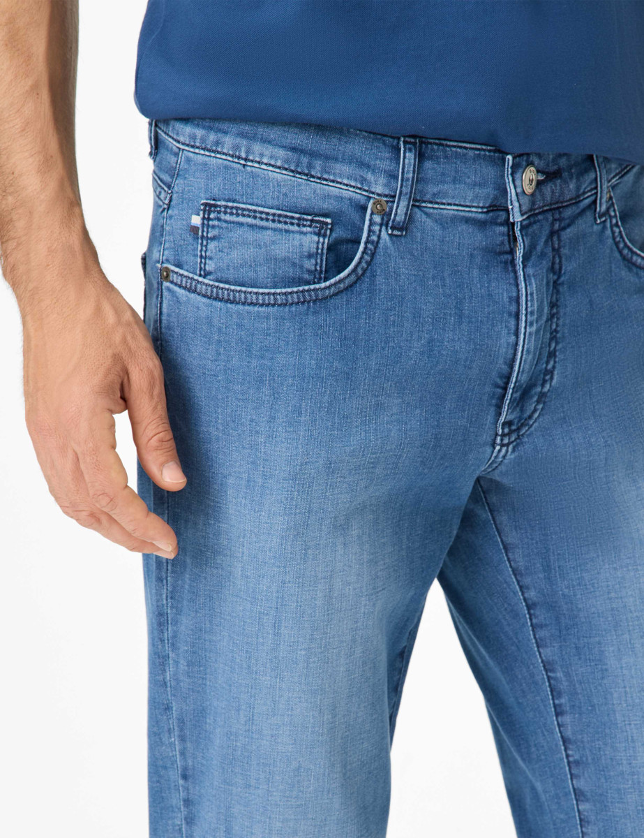 Ein Everyday-Piece für Herren ist der Style CADIZ. Kreieren Sie Ihren modebewussten Auftritt mit dieser Five-Pocket-Jeans in Kombination mit sommerlichen Sweats und Sneakern. Die Straight Fit Herrenhose ist zeitlos durch ihren Classic Cut mit regulärer Bundhöhe und geradem Bein. Eine sportive Optik erhält die Hose insbesondere durch das aufwendige Taschendesign. Sie ist zusätzlich mit coolen Used-Effekten gearbeitet. Unique und authentisch steht der Denim für hohe Strapazierfähigkeit. Simpel aber effektvoll ist das charakteristische Finish. Der nachhaltige, unempfindliche und hautsympathische Baumwollmix bietet außerdem bei dieser Five-Pocket-Jeans ein einwandfreies Tragegefühl.