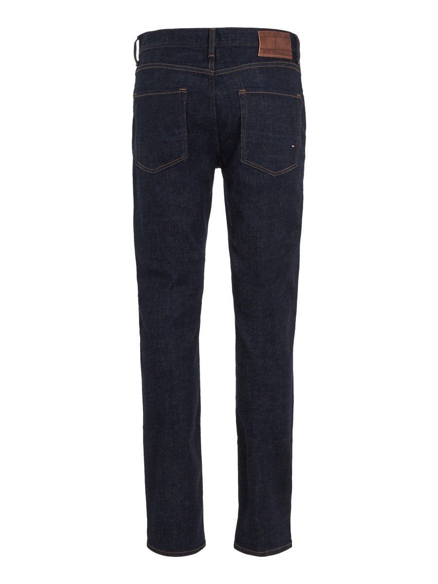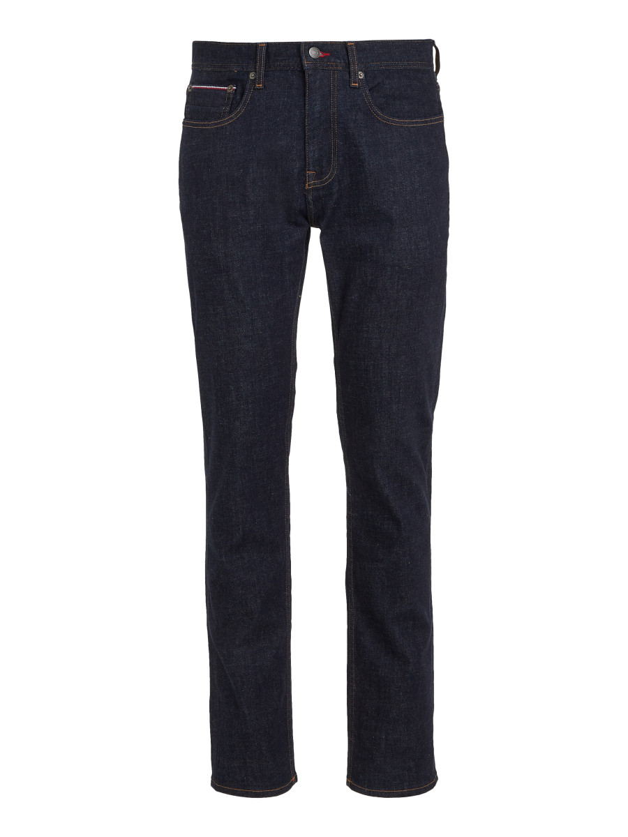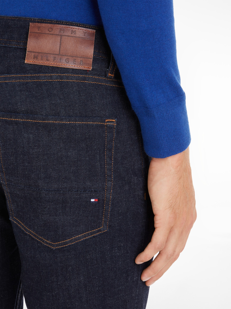 Tommy Hilfiger Herren Jeans Denton Baumwoll-Elasthan-Mix Straight Fit Knopf- und Reißverschluss 5-Pocket-Design Logo-Stickereien Label-Patch am Bund