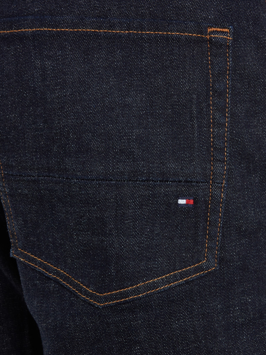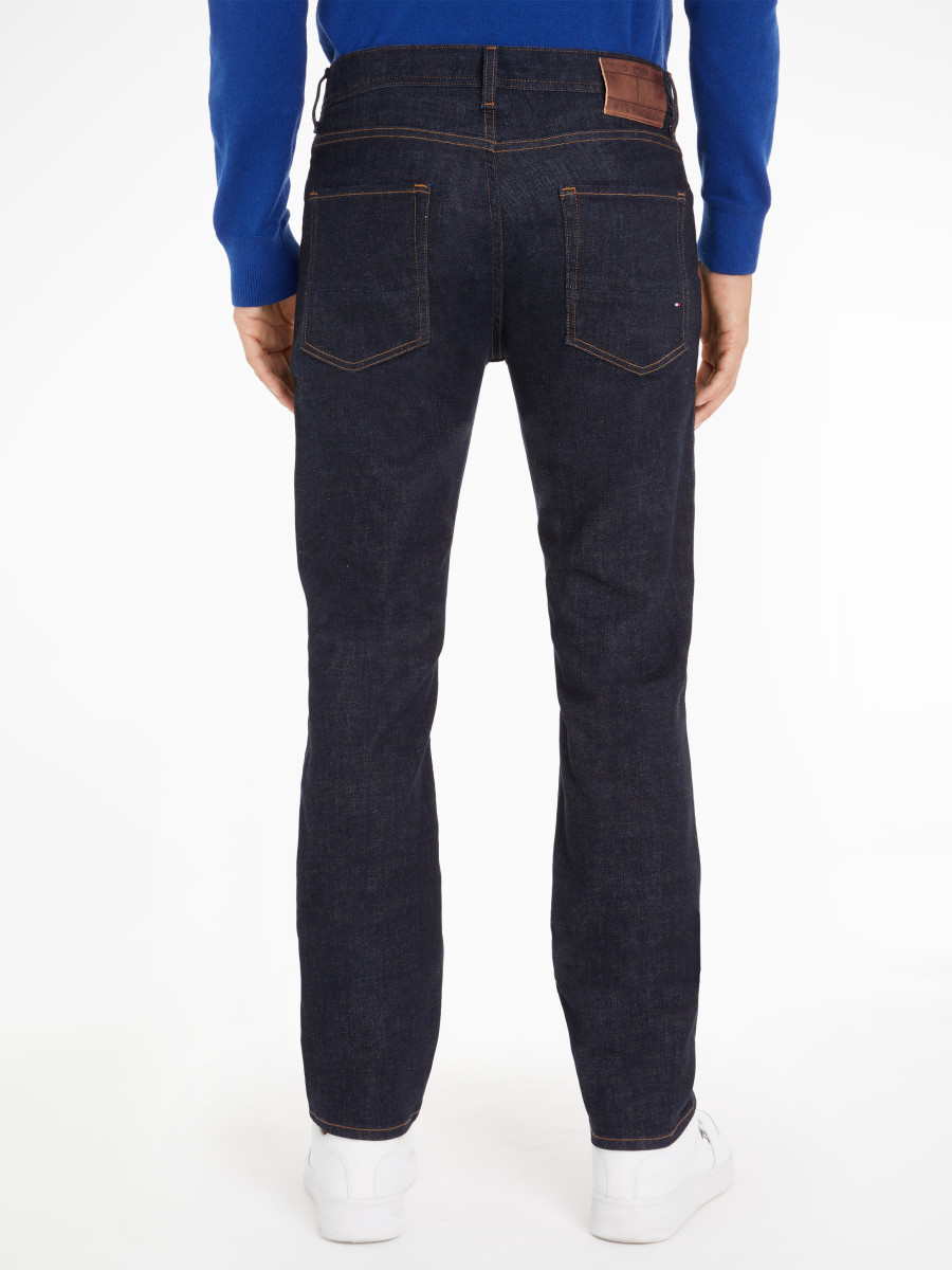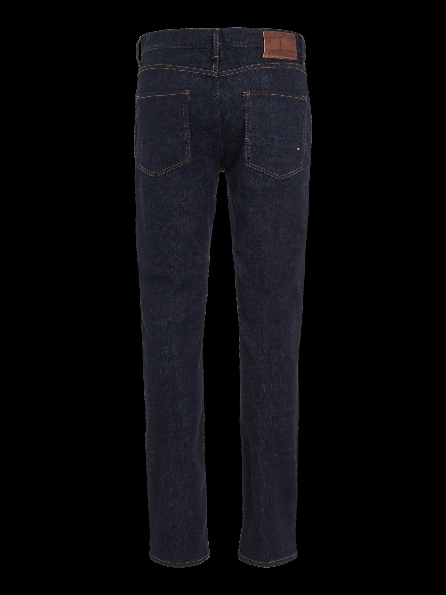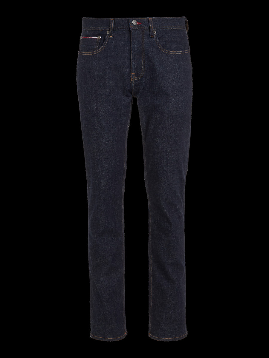 Tommy Hilfiger Herren Jeans Denton Baumwoll-Elasthan-Mix Straight Fit Knopf- und Reißverschluss 5-Pocket-Design Logo-Stickereien Label-Patch am Bund