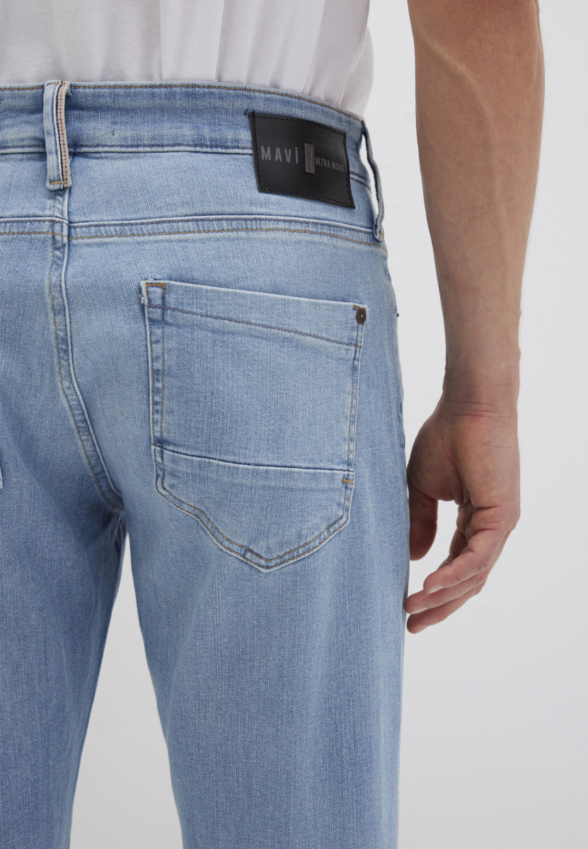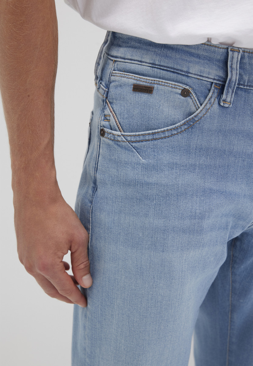 Schmaler Beinverlauf | Normalhoher Bund | 5-Pocket-Style | Reißverschluss | Leichte Denimqualität mit hohem Stretchanteil | Helle Waschung in stark ausgewaschener Optik
