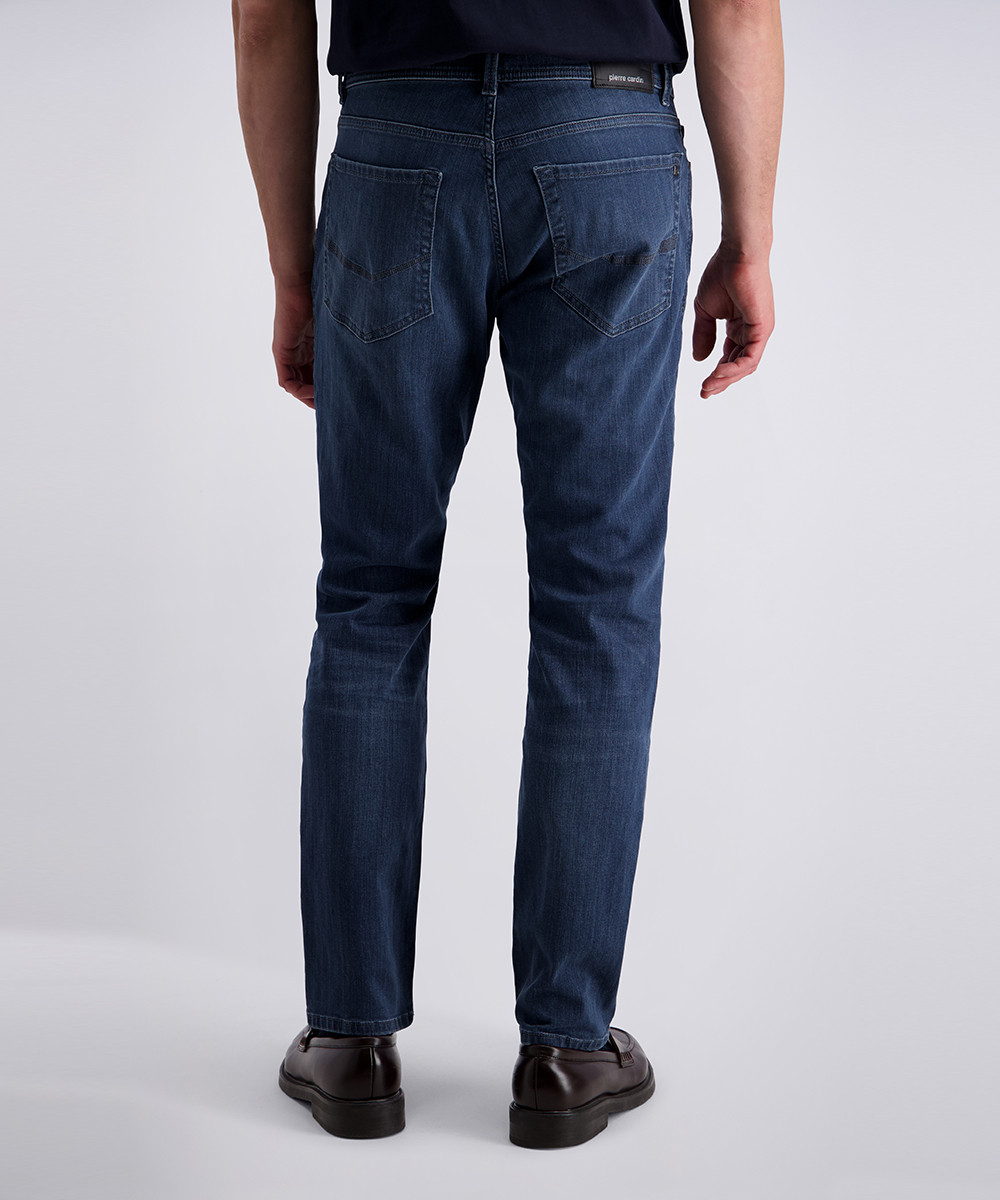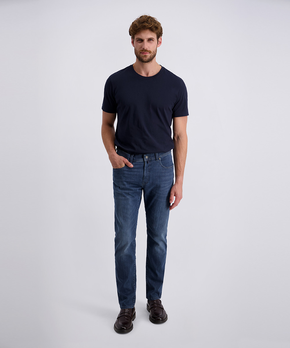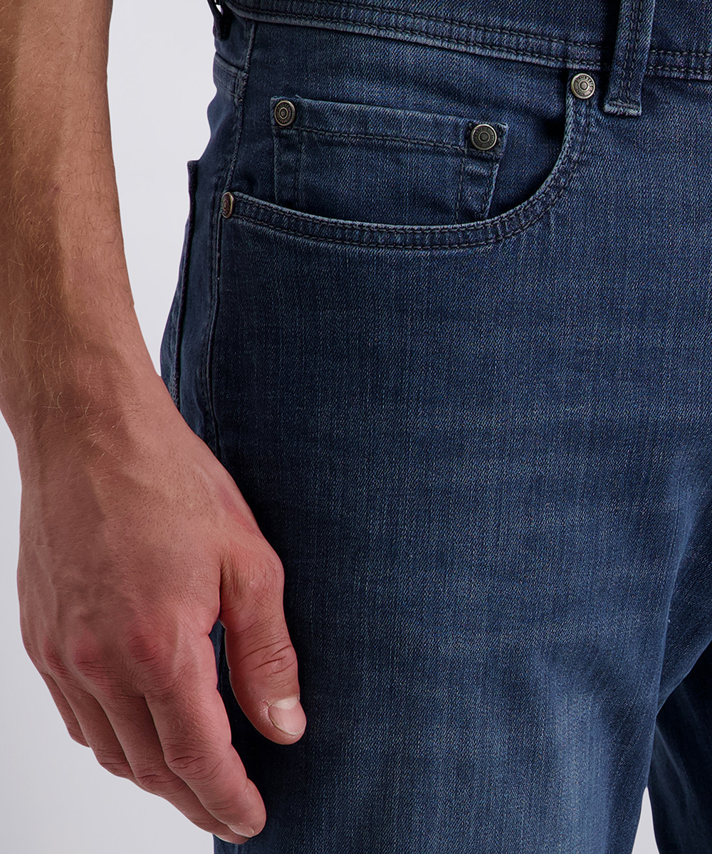 Diese klassische Herren-Jeans in mittelblauer Waschung ist ein vielseitiger Allrounder für Alltag und Freizeit. Der gerade Schnitt sorgt für eine angenehme Passform, während dezente Wasch-Effekte dem Look eine moderne Note verleihen.
