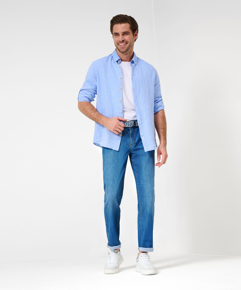 Der Style CADIZ ist ein Key-Piece für Herren. Kreieren Sie Ihren modebewussten Auftritt mit dieser Five-Pocket-Jeans in Kombination mit sommerlichen Sweats und Sneakern. Die Straight Fit Herrenhose wirkt durch die klassische Passform mit regulärer Bundhöhe und geradem Bein. Eine bewährte Optik erhält die Hose insbesondere durch die aufgesetzten Gesäßtaschen. Sie ist zusätzlich mit coolen Used-Effekte gearbeitet. Unique und authentisch steht der Denim für hohe Strapazierfähigkeit. Simpel aber effektvoll ist das charakteristische Finish. Der nachhaltige, unempfindliche und hautsympathische Baumwollmix bietet außerdem bei dieser Five-Pocket-Jeans ein sehr gutes Tragegefühl.Form: * Five-Pocket-Jeans * Herrenjeans * Zusätzliche Coinpocket * Einschubtaschen vorn * Aufgesetzte Gesäßtaschen * Verdeckter Reißverschluss * Gerader Schnitt * Normale Leibhöhe * Straight Fit * Normale Fußweite Material: * Blue Planet * Zeitgemäßer Denim * Baumwolle: hautsympathisch, atmungsaktiv, strapazierfähig * Elasthan: hochelastische Faser, sorgt für mehr Bewegungsfreiheit * Haut- und tragefreundlich * Pflegeleicht Details/Verarbeitung: * Unifarben * Used-Effekte * Modernes Label Maße: * Bundweite bei Inch Größe 34/32: 89 cm * Beininnenlänge bei Inch-Größe 34/32: 82 cm * Fußweite bei Inch-Größe 34/32: 38 cm * Gewicht m²: 265 g * Unser Model trägt Inch-Größe 33/32 und ist 188 cm groß