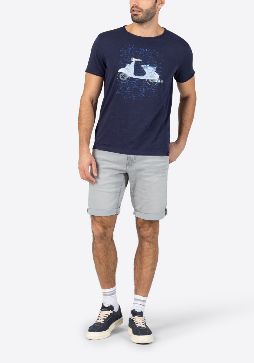 Im Sommer lieben wir sie. Sie sind einfach zu stylen und lassen sich endlos kombinieren: graue Jeans-Shorts. Man kann sie fast überall tragen, nur im Büro sind sie tabu. Kombiniert mit einem Kurzarmhemd verbindet sich die Coolness von Denim mit der Förmlichkeit des Hemdes. Five-Pocket-Style in optimal lässiger Slim-Fit-Passform mit mittlerer Leibhöhe und kurzem, schlanken Bein und dauerhaften Sitzfalten. Wer will, kann das Bein lässig hochkrempeln und sieht die cool eingefassten Seitennähte.