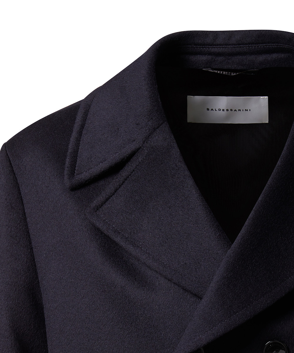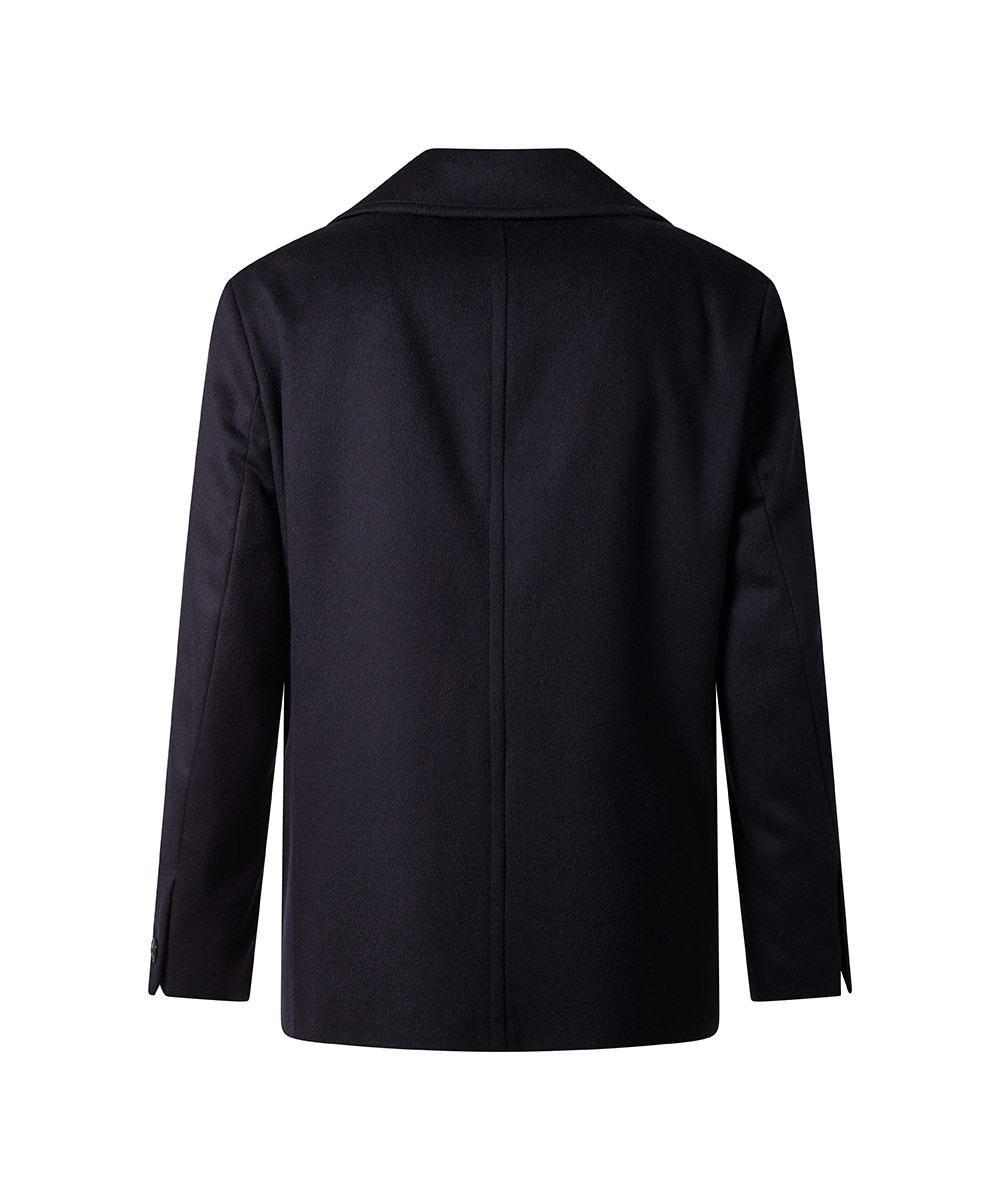 Die doppelreihige Knopfleiste, das weite Revers sowie die dezent eingesetzten Seitentaschen unterstreichen den maritimen Ursprung dieses Klassikers, während das moderne Design für einen zeitgemäßen Look sorgt.