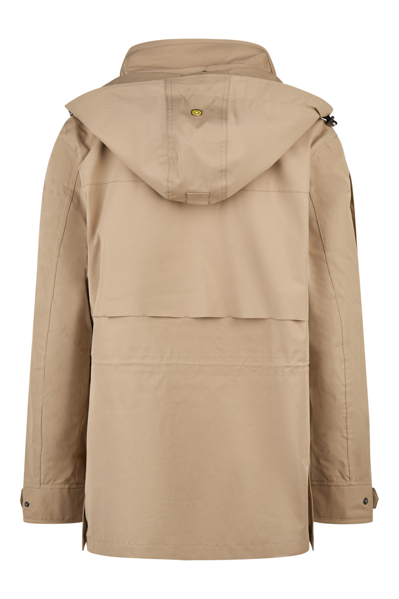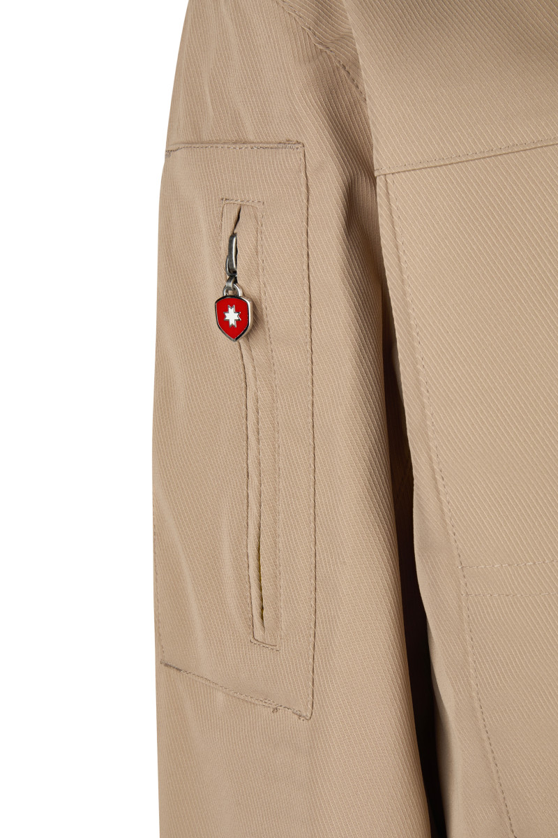 Leichte, klimastabile Multifunktions-Übergangsjacke in ¾- Länge. Sie verfügt über fünf Außentaschen, eine Napoleontasche, zwei Innentaschen mit Reißverschluss und eine große Multi-Pocket. Zum optimalen Windschutz verfügt die Golfjacke über einen hohen Sturmkragen sowie eine in zwei Richtungen verstellbare Kapuze. Die Taillenweite sowie die Ärmelabschlüsse sind per Tunnelzug verstellbar.