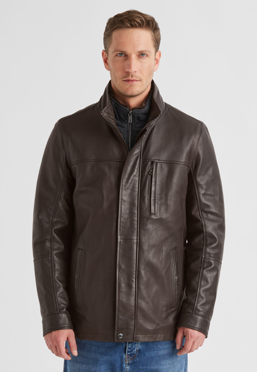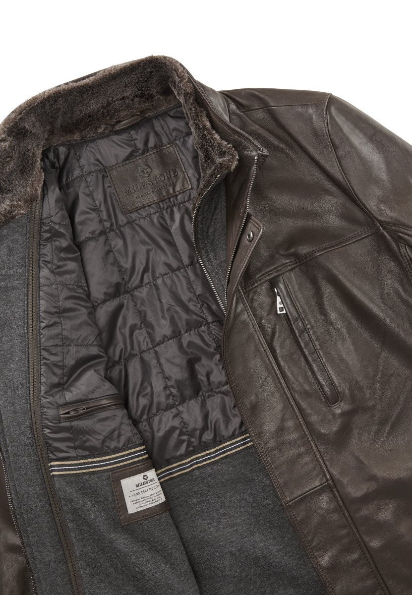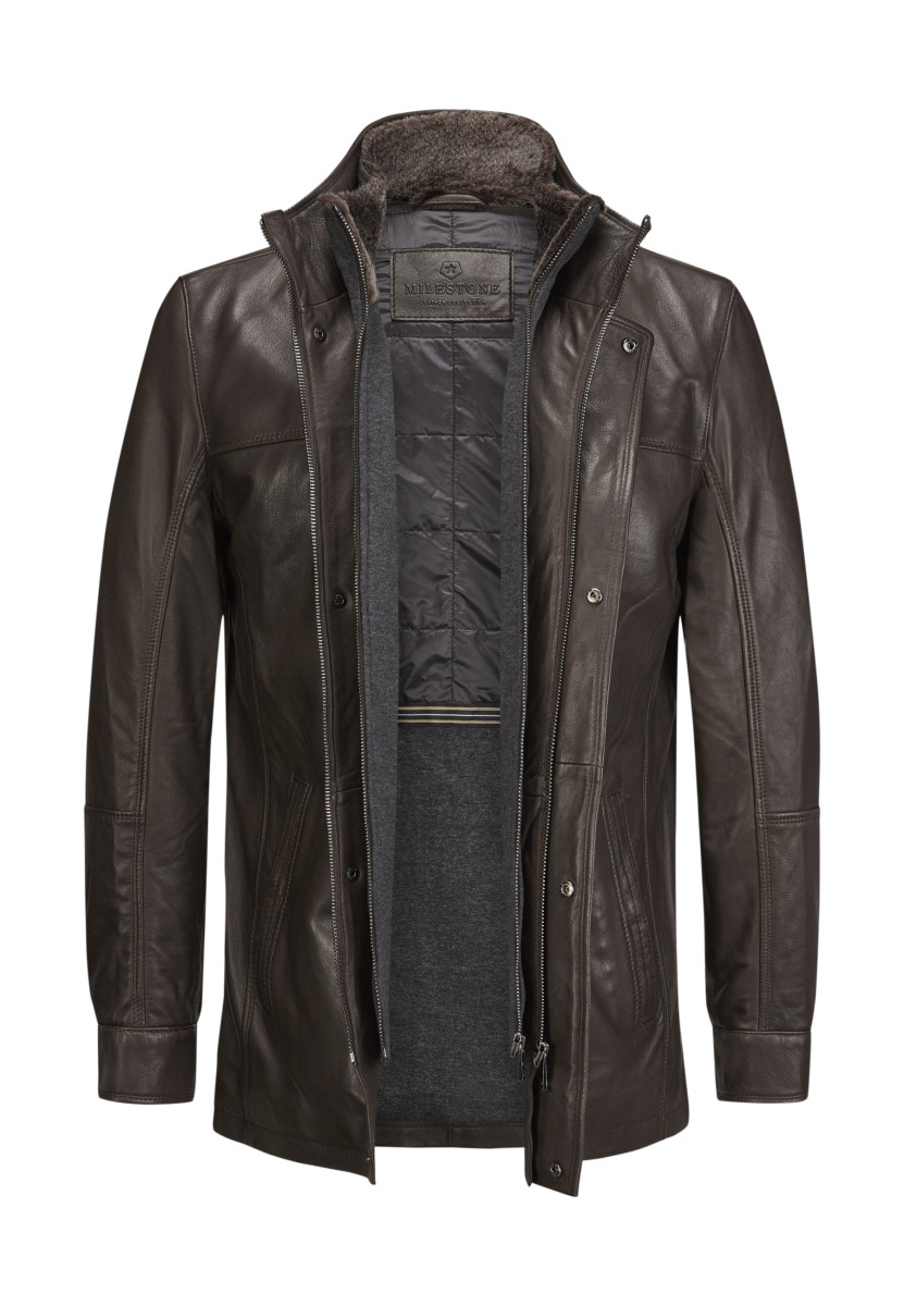 Dank hochwertiger Lammqualität präsentiert sich das Modell als optimaler Herbst und Winter-Begleiter, während die edel gegerbte Optik klassische Akzente setzt. Der abnehmbare Windschutz aus Baumwoll Jersey Melange-Qualität verleiht eine legere Note und rundet das Design perfekt ab. Der Innenkragen der Blende/Windschutz aus Immi Pelz sorgt für ein Wärmendes Tragegefühl an kälteren Tagen. • Bequeme Passform • Hochschließender Kragen • Sacco deckende Länge • Leichte Wattierung • Heraustrennbarer Windstopper mit Immi Pelz Kragen • Druck Knopf Leiste • Robuste Metall Reißverschlüsse • 3 Außentaschen • Praktische Innentaschen • Ziernähte