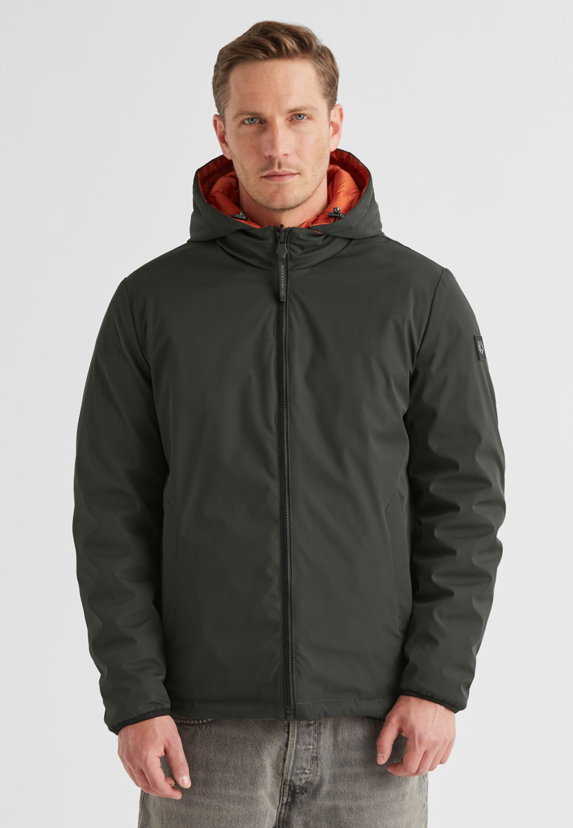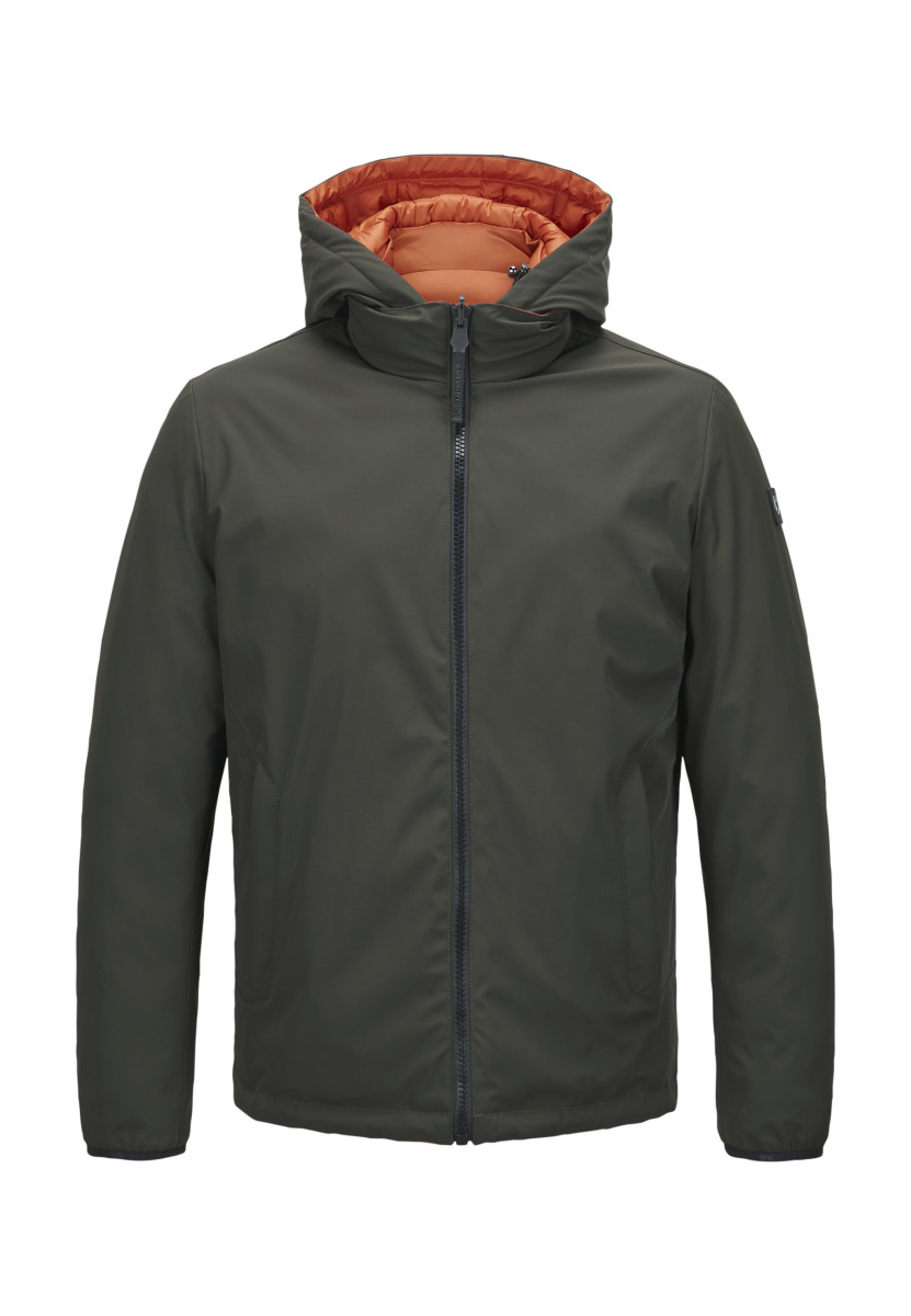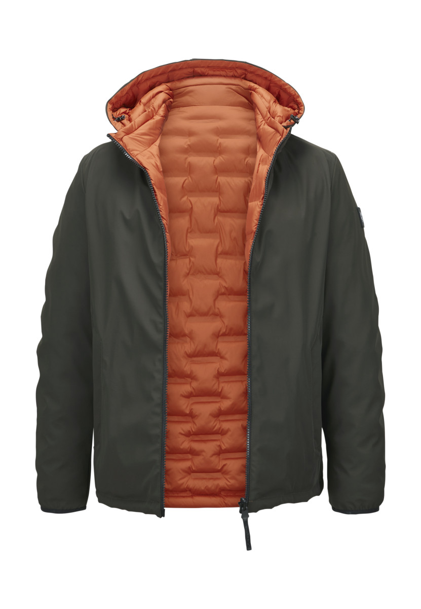 Wendejacke mit leicht taillierter Passform • Oberstoff (glatte Seite): funktionelle 3-lagige Qualität mit Membran und Elasthan-Anteil, atmungsaktiv / wasser- und winddicht, Wassersäule 10.000mm • Innenseite: heat-pressed Stoff in Stepp-Optik, wasserabweisend, atmungsaktiv • Hochabschließender Kragen • Abtrennbare Kapuze mit Tunnelzug und Logo-Print • Schließt mit Reißverschluss • Seitliche Reißverschlusstaschen, Reißverschlussband mit reflektierenden Akzenten • Ärmelbündchen mit elastischem Logo-Tape • Verstellbarer Saum mit Tunnelzug • Logo-Badge am Ärmel • Nachhaltige DUPONT SORONA®AURA Isolierung. Die Isolierung besticht durch ihre Leichtigkeit und optimaler Wärmeisolation. Die Wattierung besteht zum Teil aus nachwachsenden, pflanzlichen Rohstoffen.