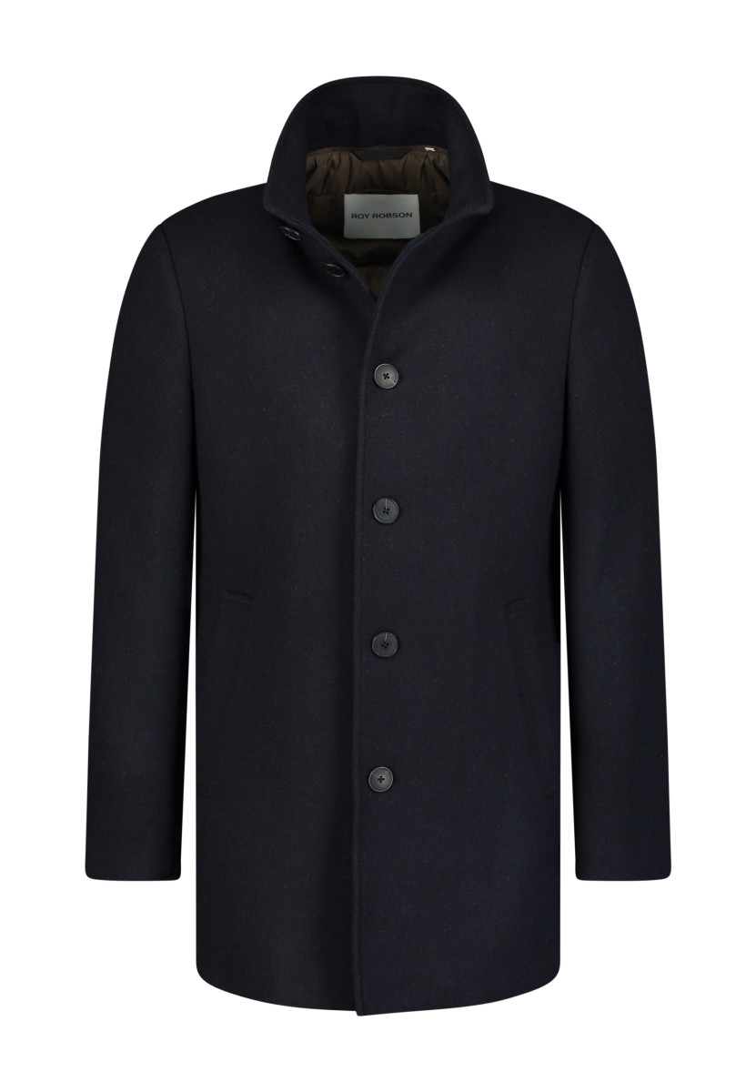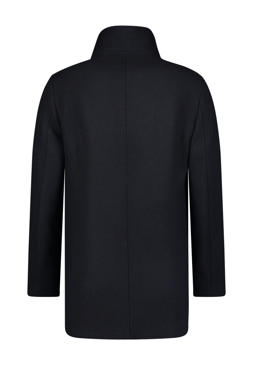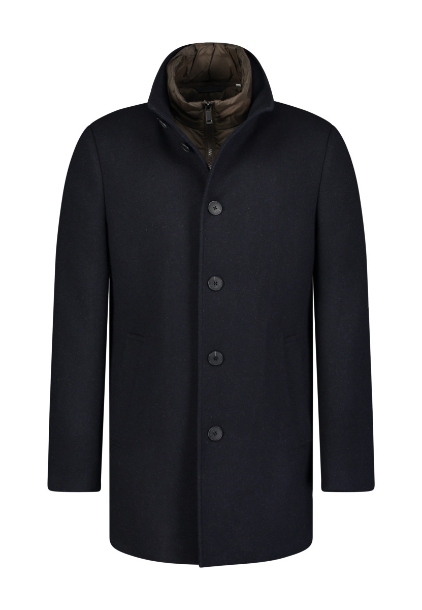 Dieser Herrenmantel ist die perfekte Ergänzung für Ihre Übergangs- und Wintergarderobe. Er kombiniert klassische Eleganz mit modernem Komfort und eignet sich sowohl für den Büroalltag als auch für elegante Freizeitaktivitäten. Der Mantel verfügt über einen klassischen Stehkragen, der zusätzlichen Schutz vor Wind und Kälte bietet, sowie eine verdeckte Knopfleiste für eine schlichte, minimalistische Optik. Ein herausnehmbarer, gesteppter Einsatz sorgt für zusätzlichen Schutz und Wärme im Halsbereich. Der schmale, leicht taillierte Schnitt sorgt für eine maskuline Silhouette, während die Länge des Mantels bis über das Gesäß reicht. Dieser Mantel ist ein stilvolles und langlebiges Essential für jede Gelegenheit.