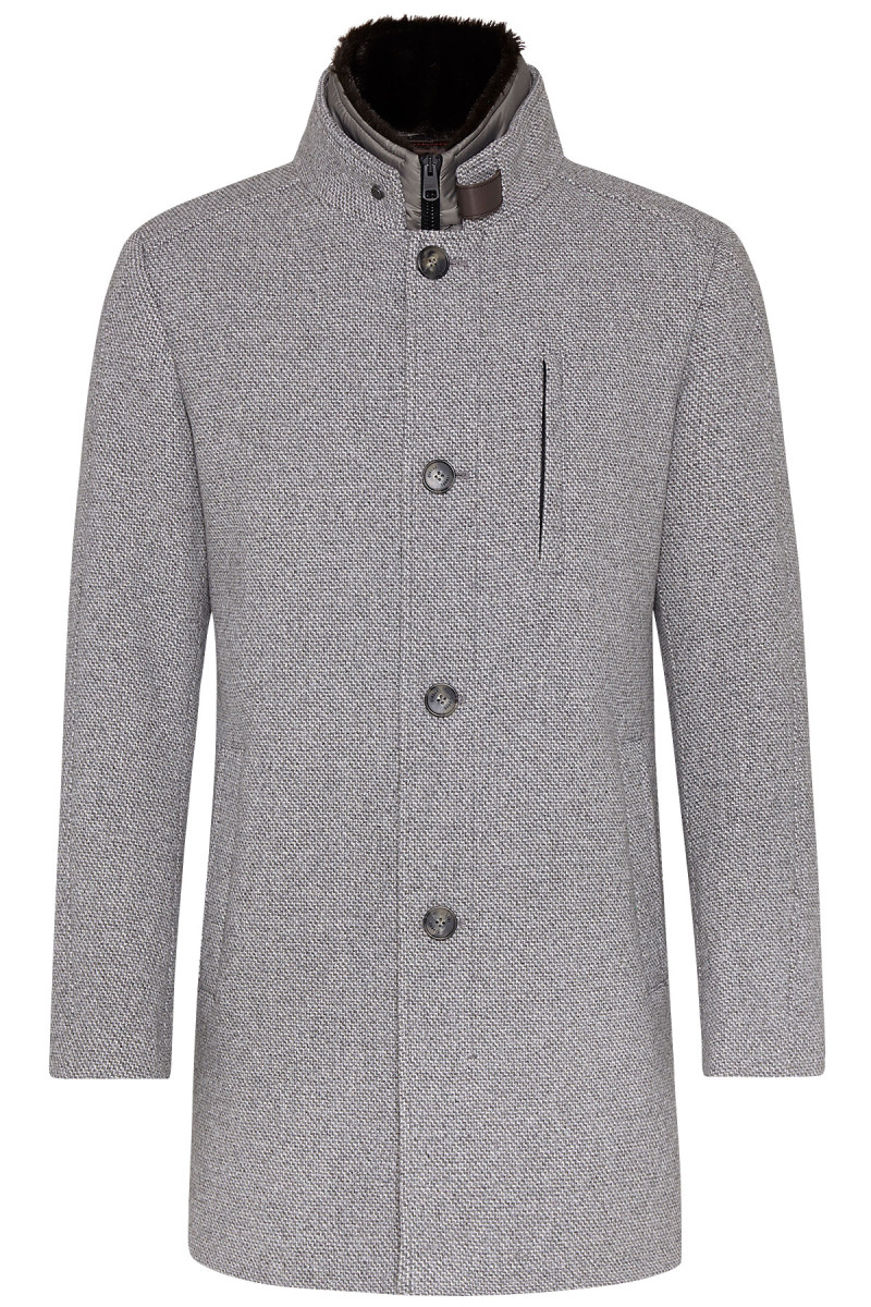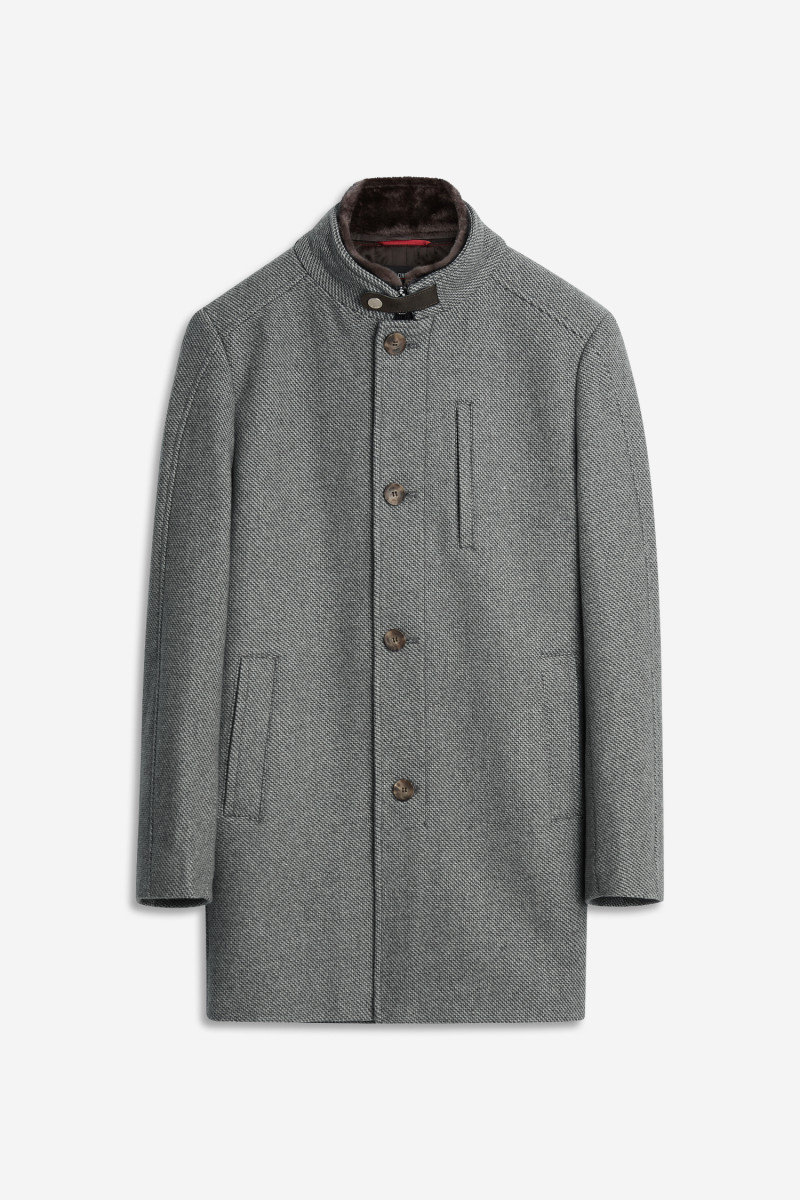 Austrennbarer Krageneinsatz | Zwei Leistentaschen | Brustleistentasche mit verdecktem Zipper | Kragenriegel mit Druckverschluss | Passform: Regular-Fit | Woll-Mix