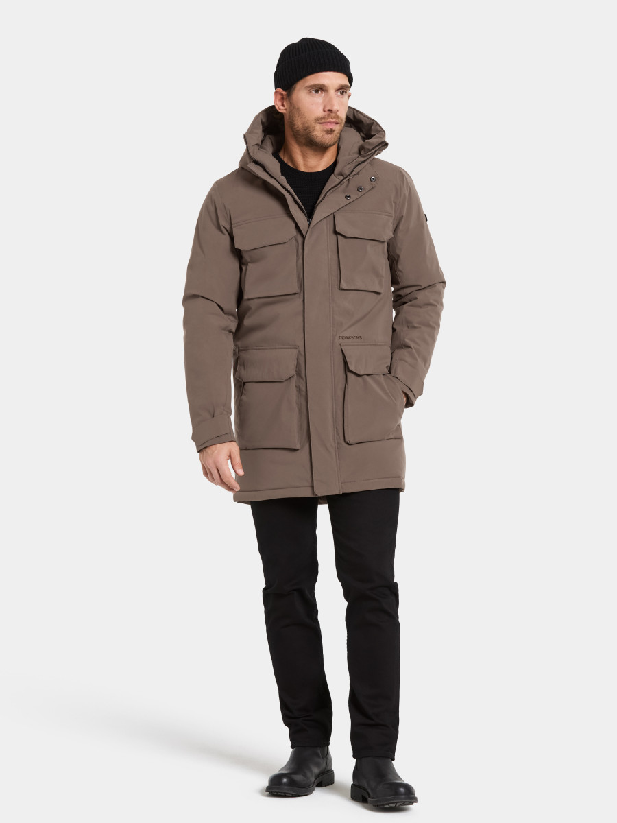 Aiden ist ein gefütterter Parka für Herren, der sowohl für Stil als auch Funktion entworfen wurde. Er ist wasser- und winddicht mit versiegelten Nähten und aus einem atmungsaktiven Material gefertigt, was ihn ideal für den täglichen Gebrauch macht. Der Parka hat eine gerade Silhouette und ist mit vielen praktischen Taschen ausgestattet, darunter Handwärmertaschen, geknöpfte Brusttaschen und eine Innentasche mit Reißverschluss.